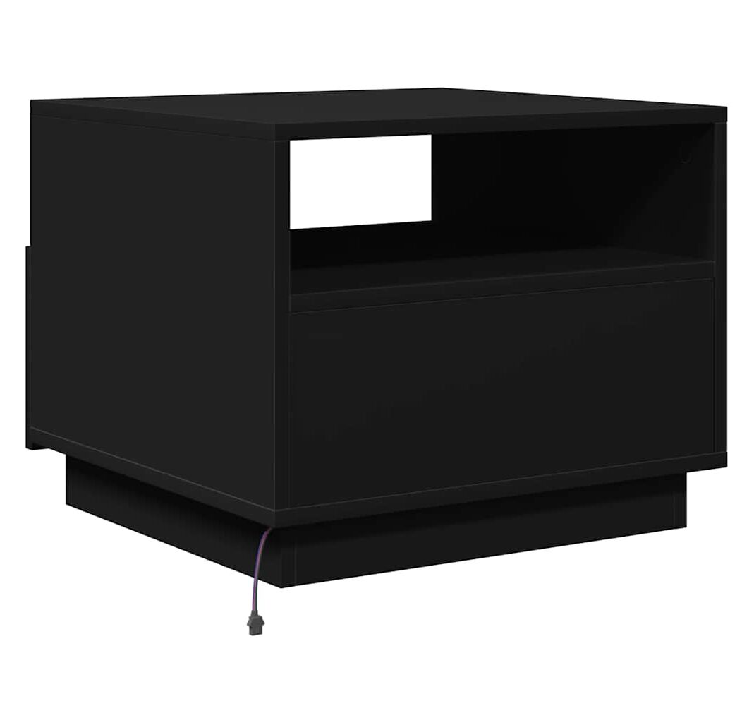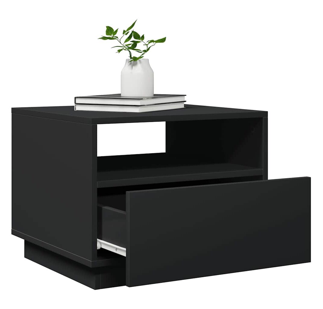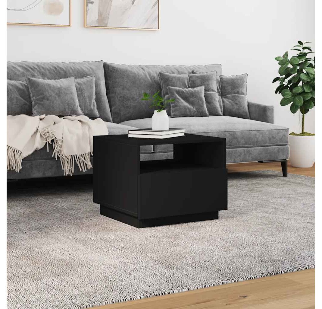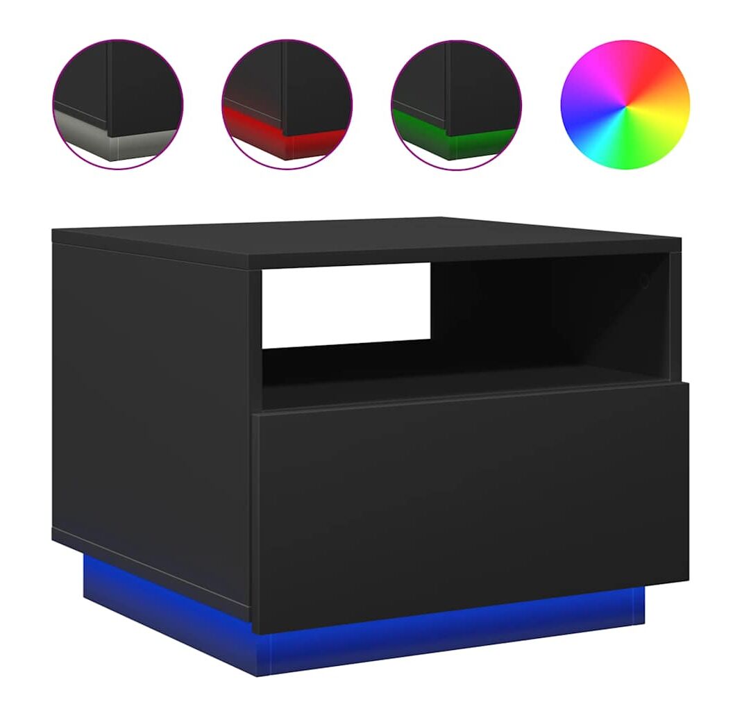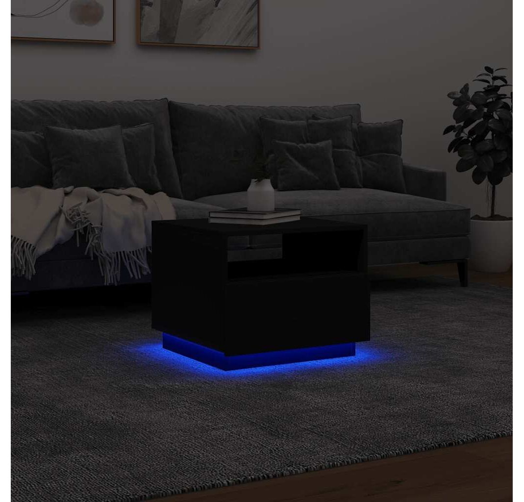 Măsuță de cafea cu lumini LED, negru, 50x49x40 cm