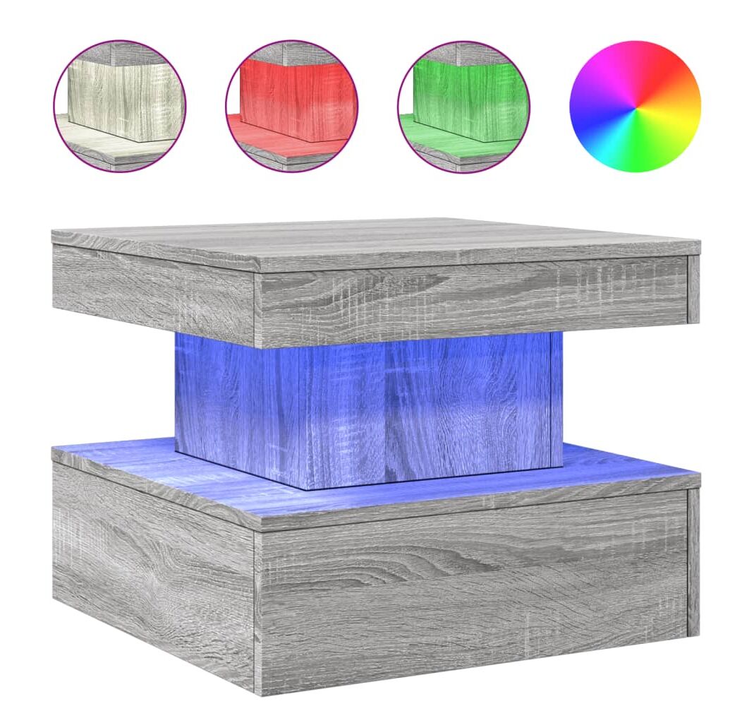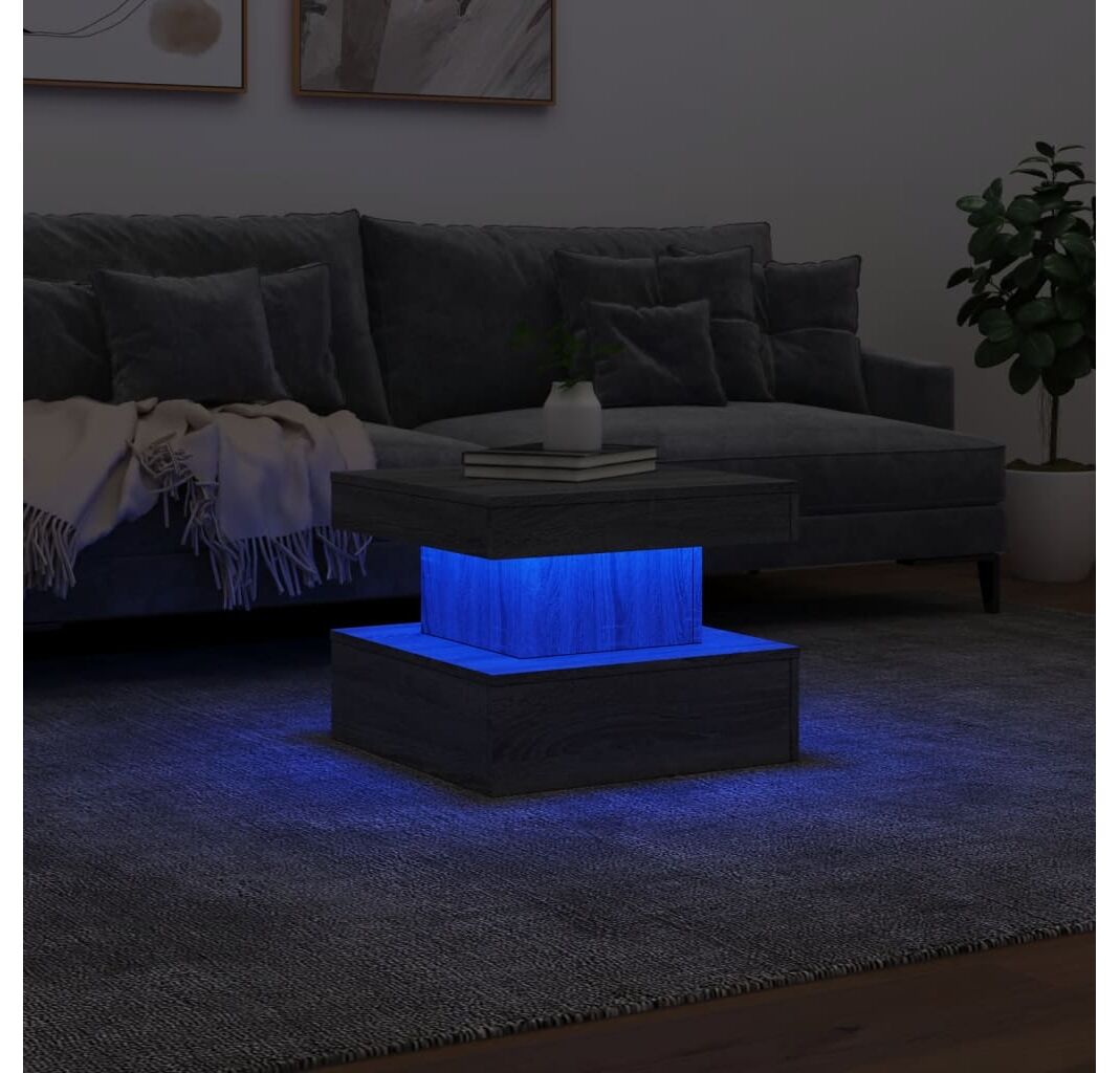 Măsuță de cafea cu lumini LED, gri sonoma, 50x50x40 cm