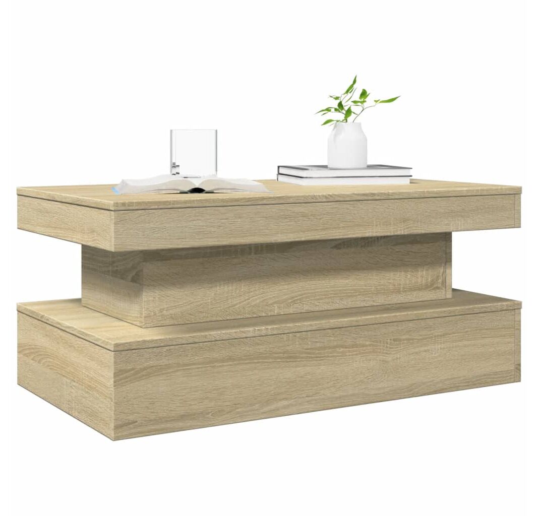 - Lumini LED RGB: Măsuța de canapea este echipată cu lumini LED RGB vibrante. Cu diverse meniuri personalizabile, puteți schimba fără efort culoarea luminilor și chiar le puteți seta să se ajusteze automat. Aceste lumini cu LED nu numai că îmbunătățesc aspectul contemporan al măsuței de centru, dar se adaugă și atractivității sale moderne.