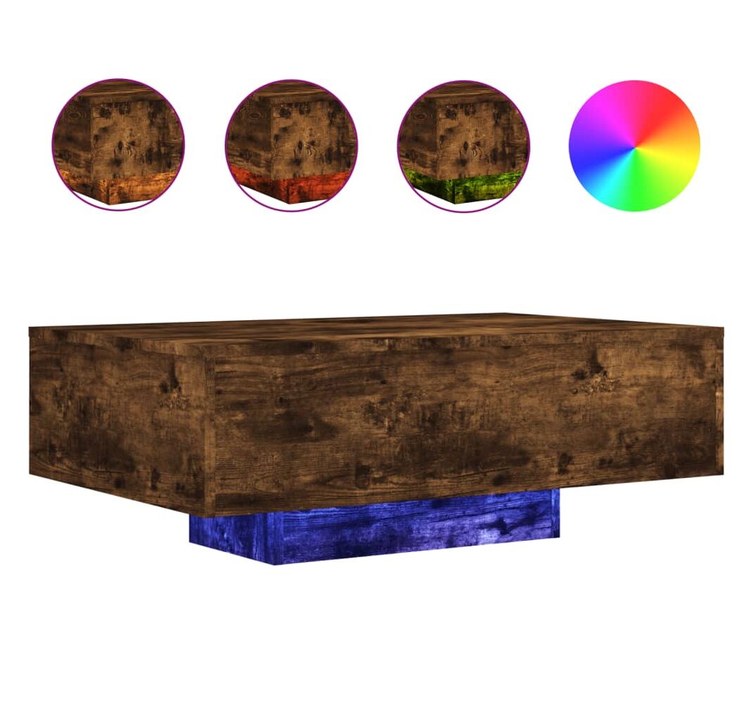 Măsuță de cafea cu lumini LED, stejar fumuriu, 85x55x31 cm
