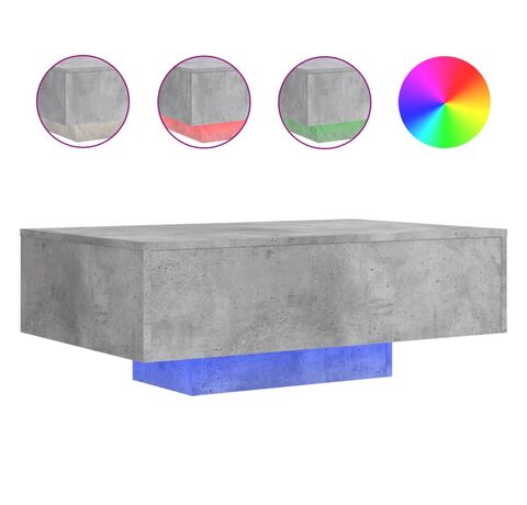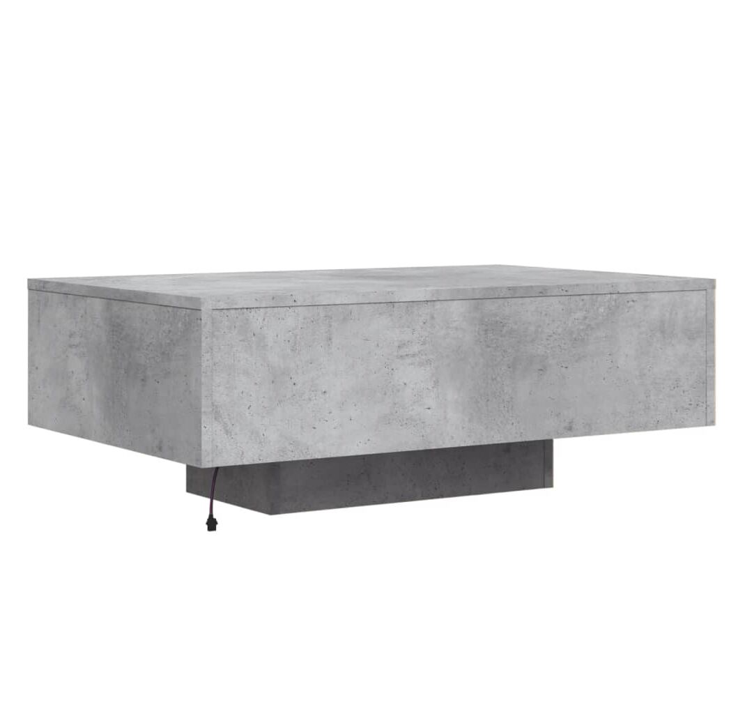 Măsuță de cafea cu lumini LED, gri beton, 85x55x31 cm