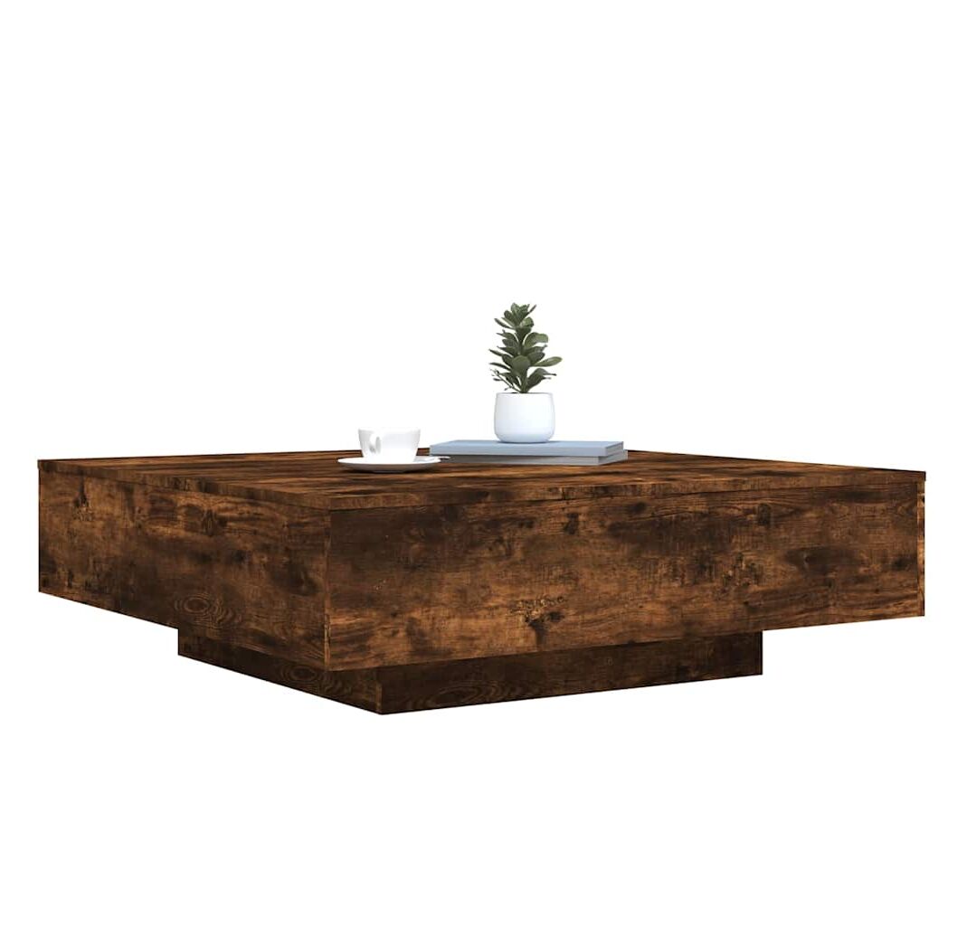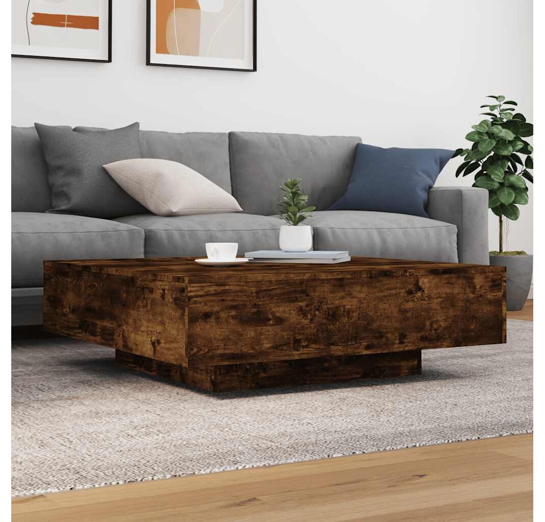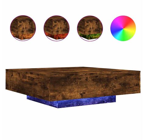 Măsuță de cafea cu lumini LED, stejar fumuriu, 100x100x31 cm