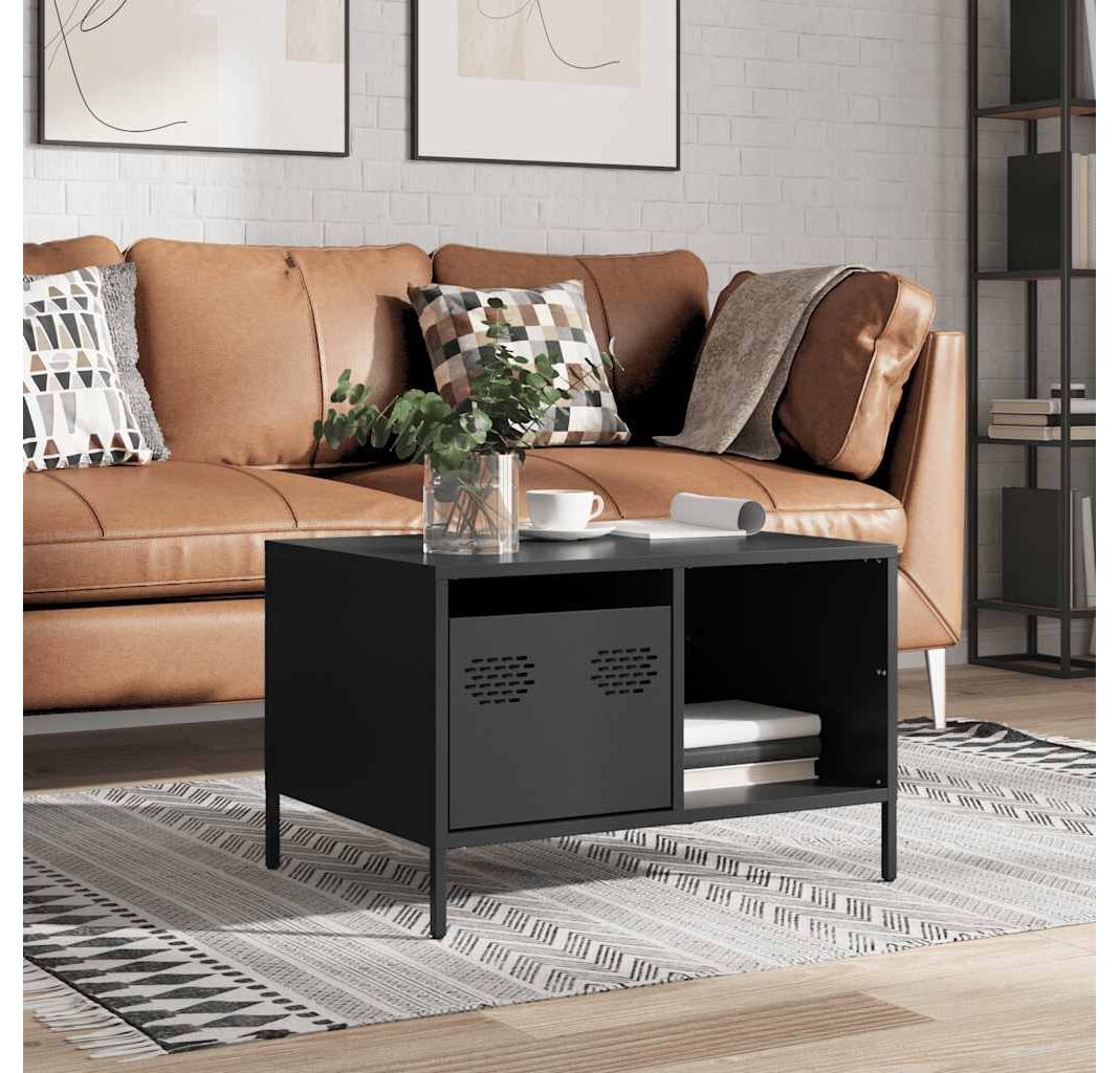 Măsuță de cafea, negru, 68,5x50x43,5 cm, oțel laminat la rece