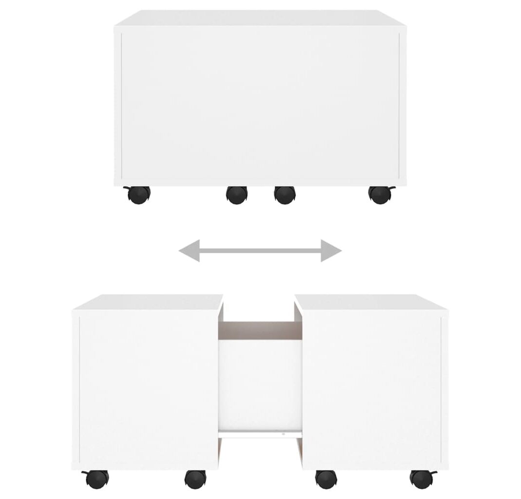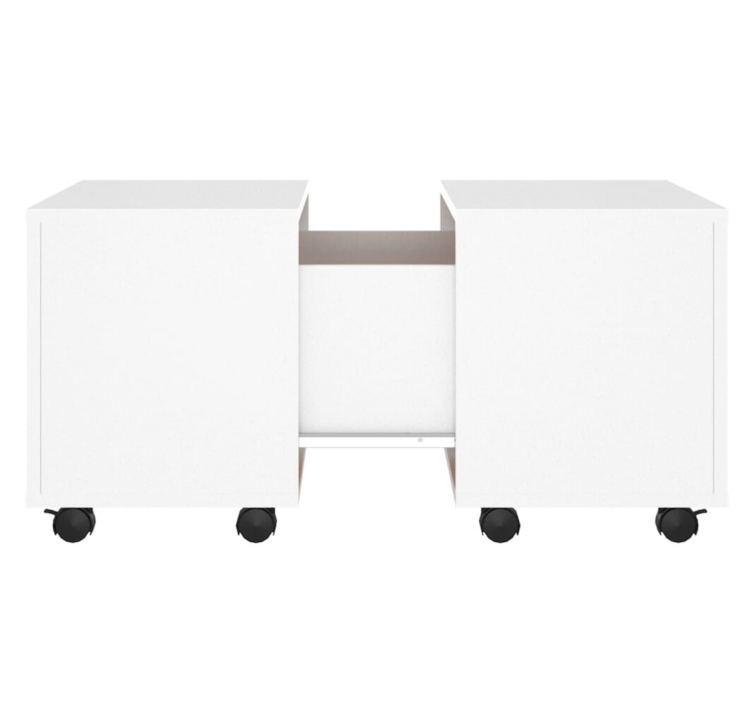 Această măsuță de canapea este realizată din lemn prelucrat, ceea ce îi asigură robustețea, durabilitatea și un serviciu de lungă durată. Această masă decorativă poate fi extinsă din ambele părți, oferind spațiu amplu pentru a vă păstra la îndemână reviste, cărți, telecomandă, precum și diverse alte obiecte mici. Datorită roților, această masă de centru este flexibilă pentru deplasare. În plus, este ușor de curățat cu o cârpă umedă.