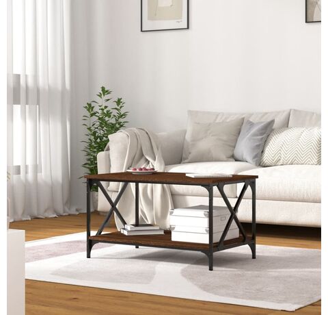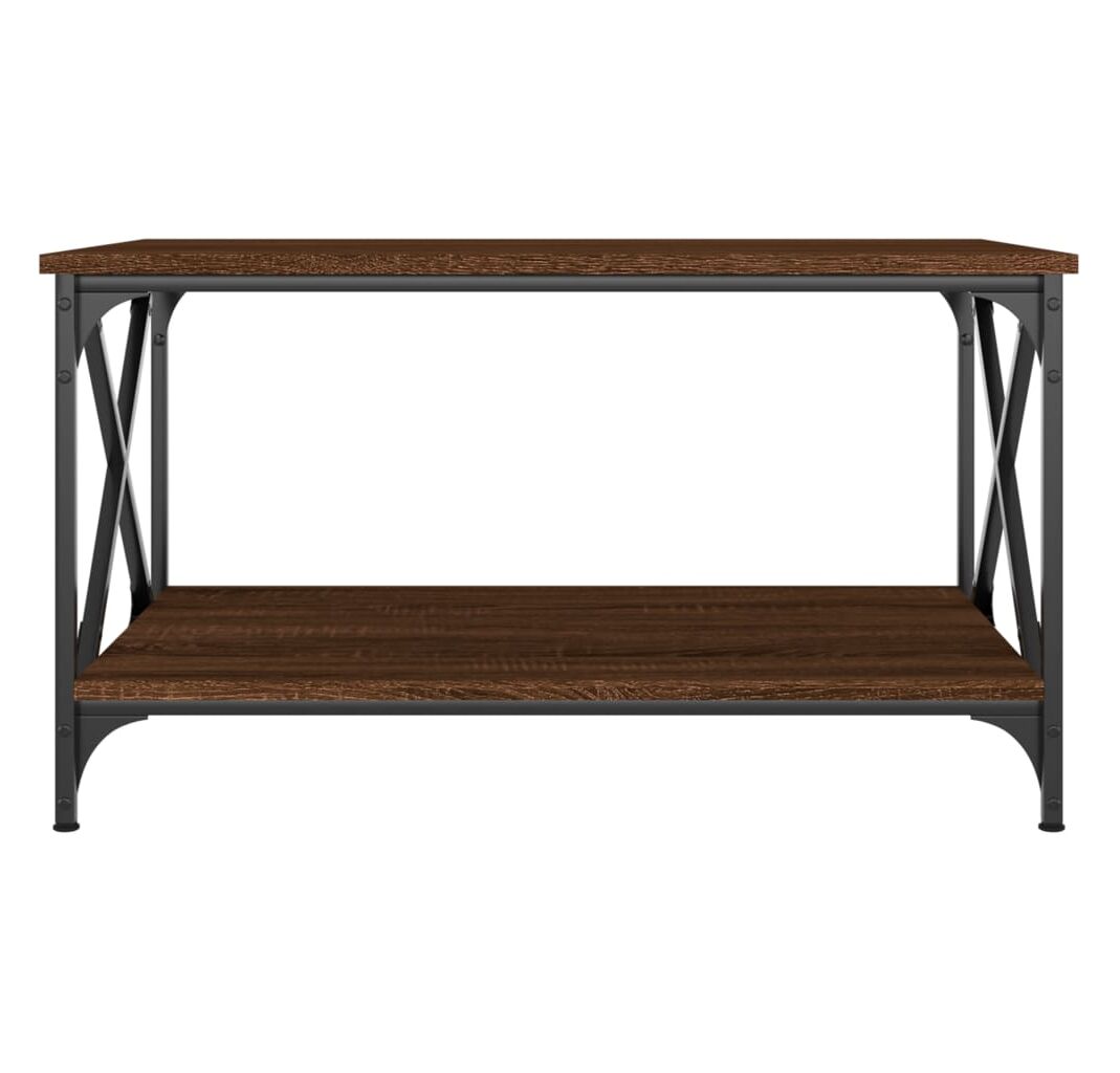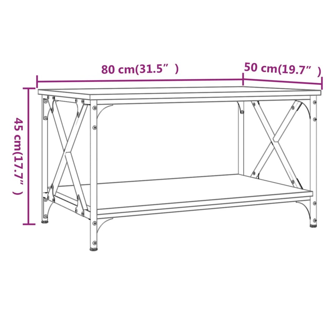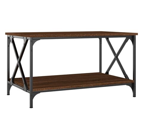 Măsuță cafea, stejar maro, 80x50x45 cm lemn prelucrat și fier