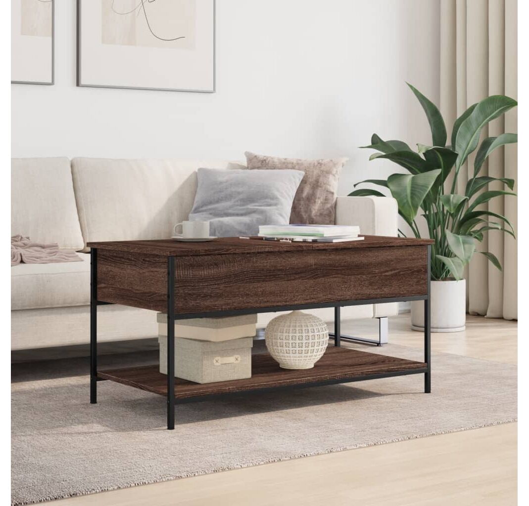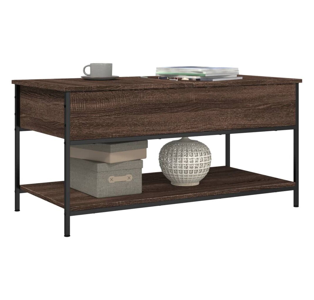 Măsuță de cafea stejar maro 100x50x50 cm lemn prelucrat/metal