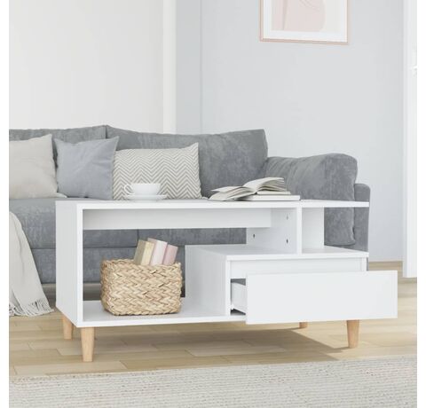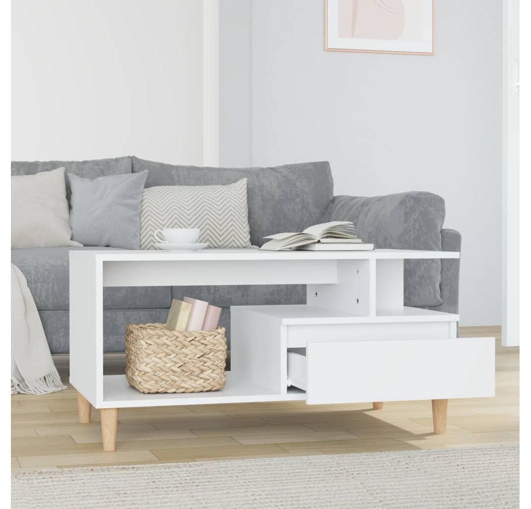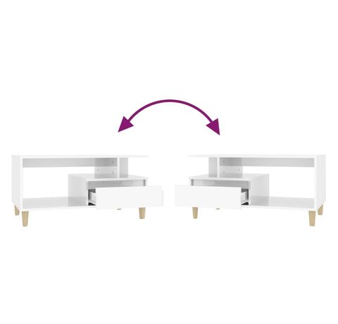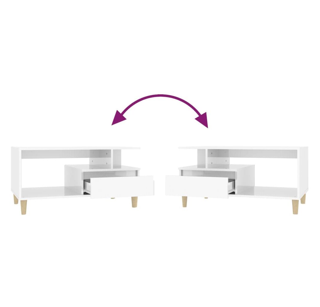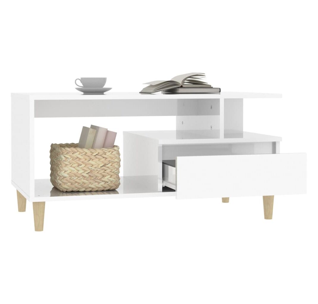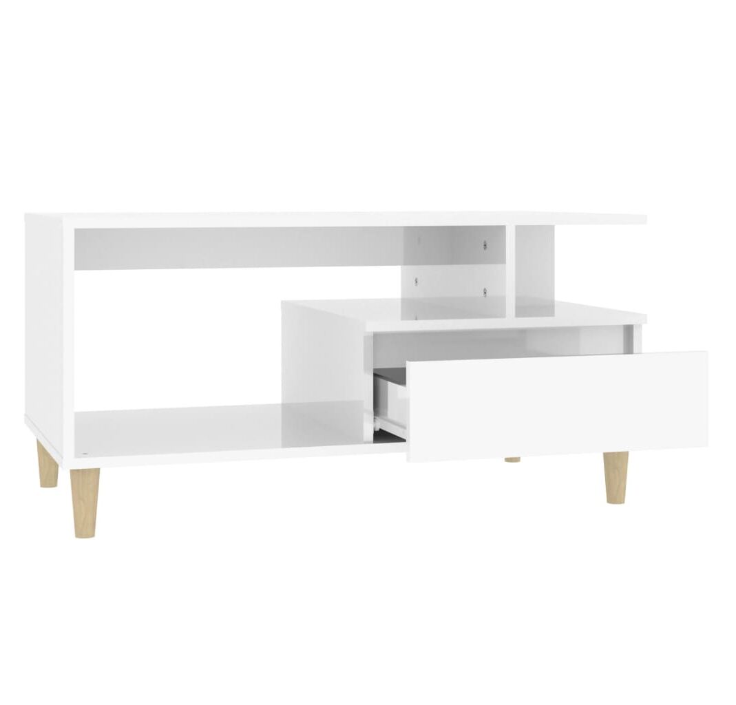 Măsuță de cafea, alb extralucios, 90x49x45 cm, lemn compozit