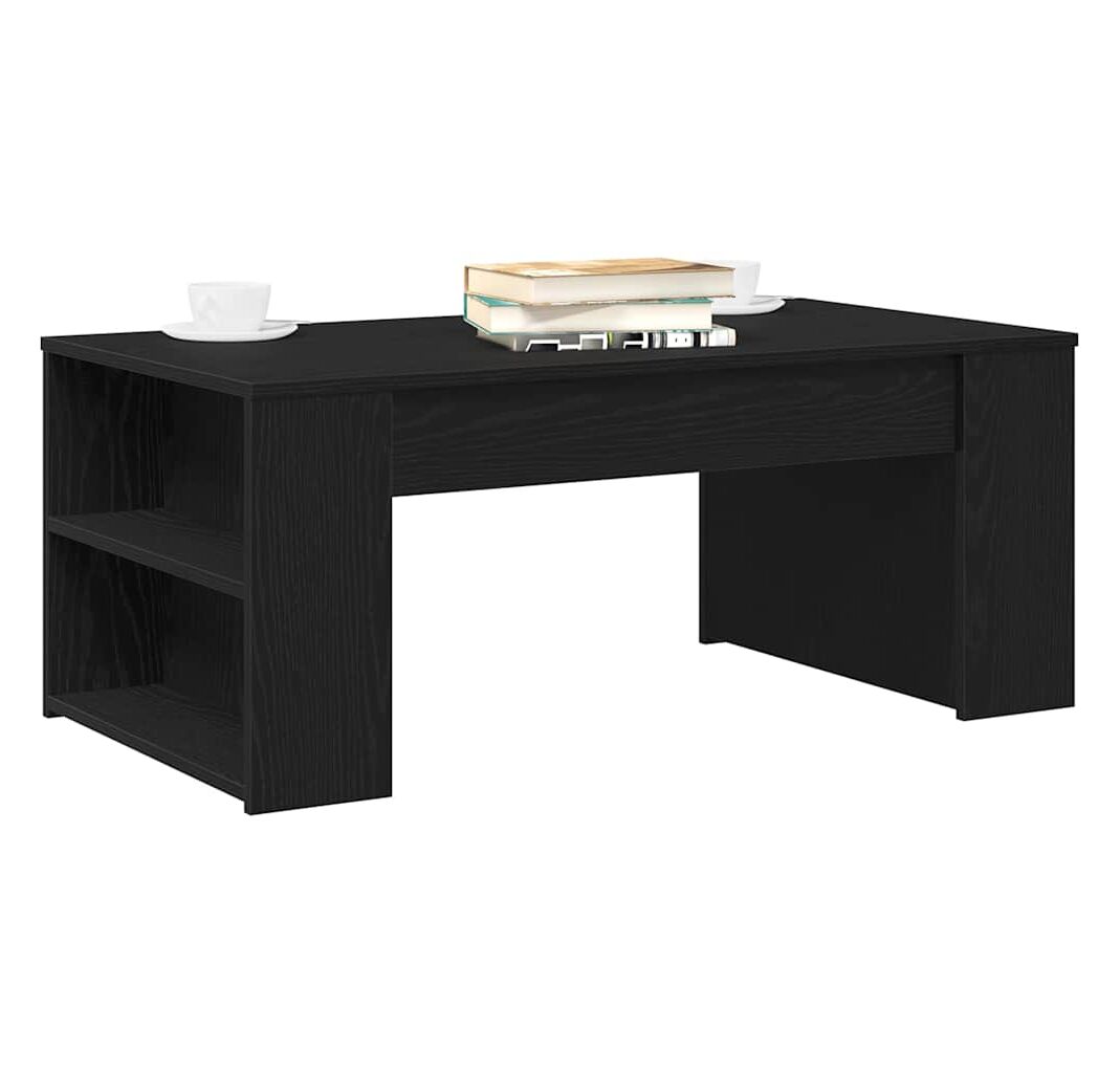 Această masă de cafea e super practică și combină stilul cu funcționalitatea, fiind perfectă pentru a revitaliza orice living. Finisajul de stejar negru și suprafața netedă creează o atmosferă caldă, făcând-o o alegere ideală pentru întâlniri relaxante sau evenimente mai elegante.