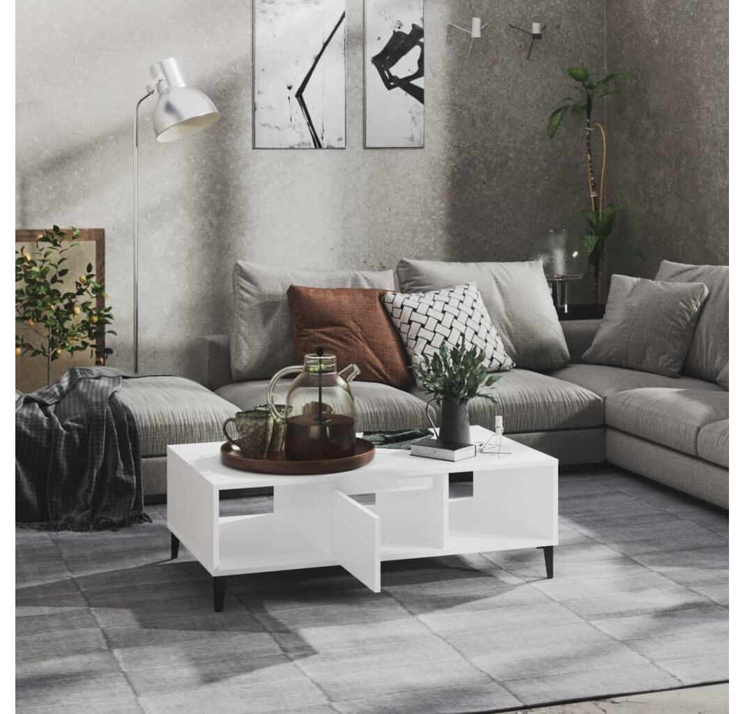 Această masă de canapea vă poate păstra ordonat spațiul de locuit, datorită rafturilor sale de depozitare și a compartimentului din spatele ușii, care sunt perfecte pentru a așeza cărți, reviste sau alte obiecte de mici dimensiuni, pe care doriți să le păstrați la îndemână. Picioarele din metal adaugă o stabilitate suplimentară. Blatul robust este ideal pentru așezarea băuturilor, a gustărilor și a obiectelor decorative. În plus, această masă pentru camera de zi este ușor de curățat cu o cârpă umedă.