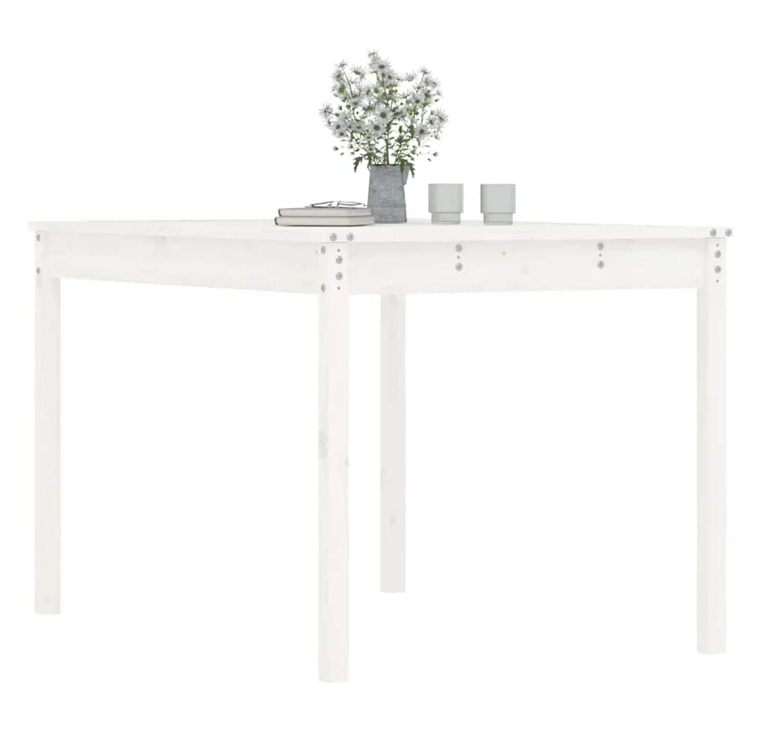 - Lemn masiv de pin: Masa de exterior este realizată din lemn masiv de pin. Lemnul masiv de pin este un material natural frumos. Lemnul de pin are o granulație plană, iar nodurile conferă materialului unicitate și un aspect rustic.