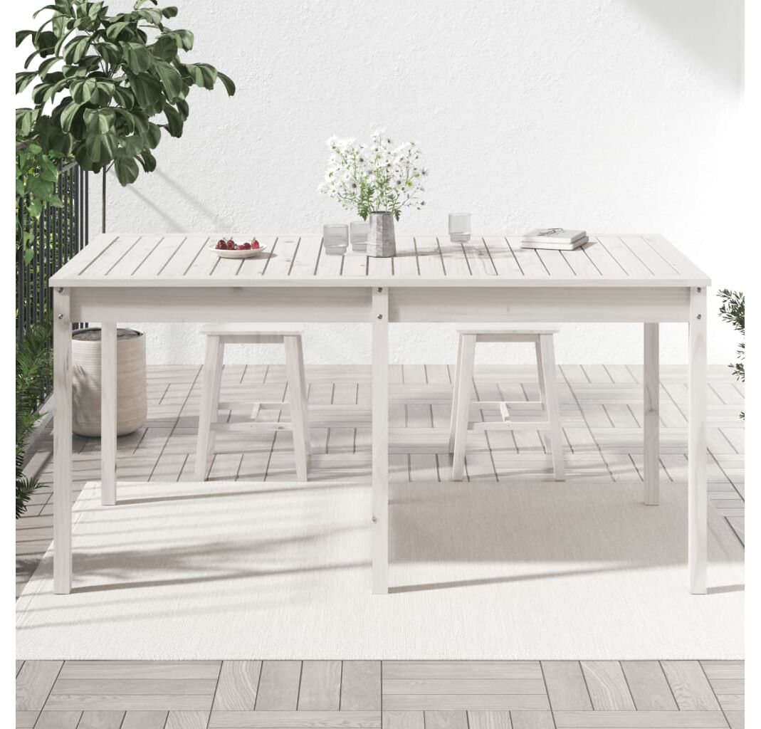 Măsuță de grădină, alb, 159,5x82,5x76 cm, lemn masiv de pin
