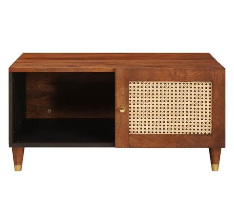 - Materiale: Masa de cafea e din lemn masiv de mango, care îi dă o structură solidă și de calitate, gata să reziste la utilizarea zilnică. Cu o textură frumoasă, lemnul de mango creează o atmosferă caldă și naturală în spațiul tău.