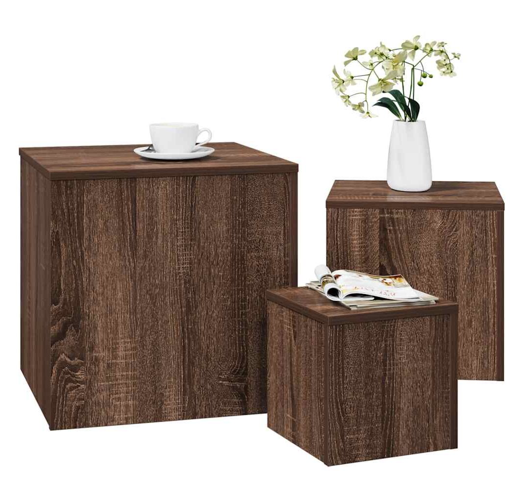 Cantitatea minima pentru "Măsuțe laterale, 3 buc., stejar maro, lemn prelucrat" este 1.