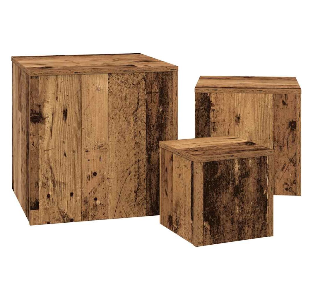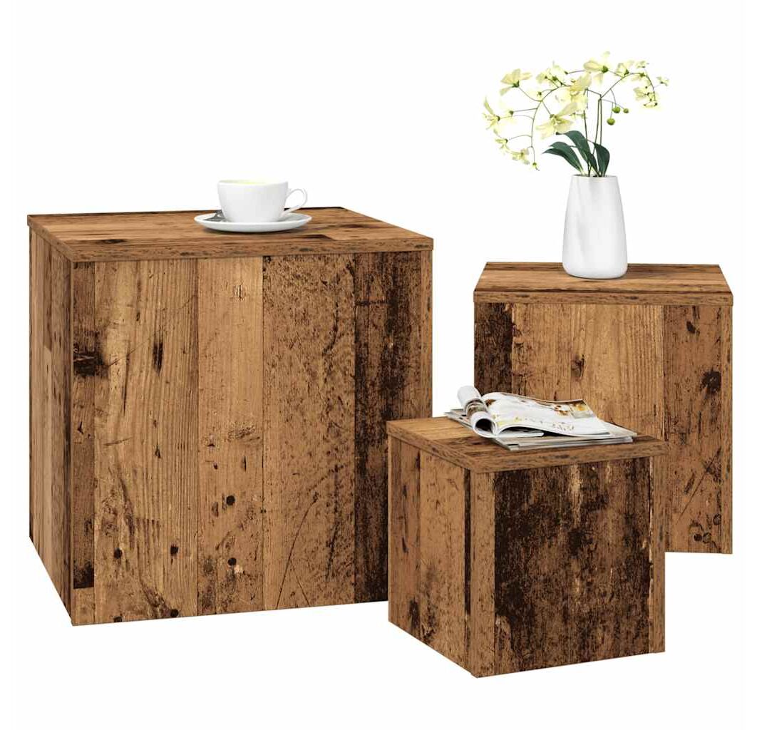 Măsuțe laterale, 3 buc., stejar artizanal, lemn prelucrat