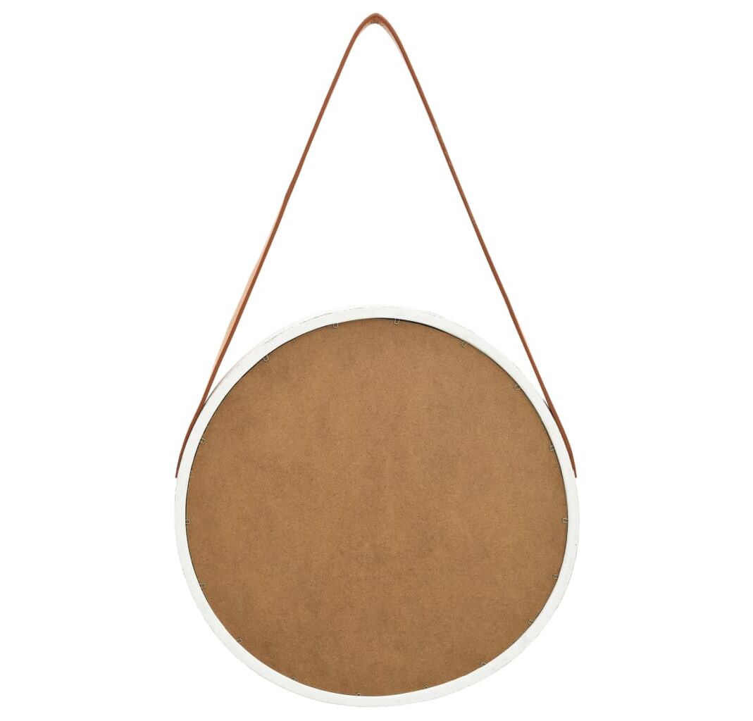 Designul în tendințe, conceput pentru această oglindă suspendată, oferă o abordare elegantă de decorațiune vintage pentru interioare moderne. Oglinda rotundă mare este încadrată cu o ramă durabilă din lemn natural de paulownia, fiind suspendată printr-o curea din piele ecologică fină. Cureaua permite reglarea oglinzii la orice înălțime aveți nevoie, adăugând o mai mare flexibilitate acestei decorațiuni.