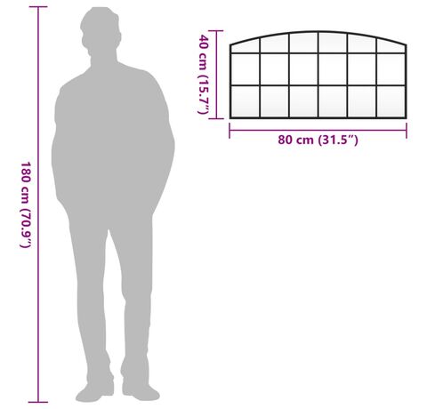 Cantitatea minima pentru "Oglindă de perete, negru, 80x40 cm, arcuită, fier" este 1.