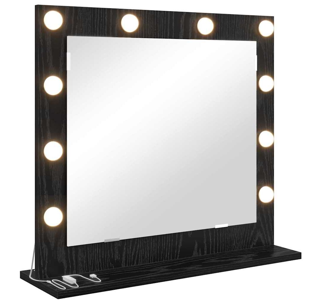 O oglindă de toaletă care e must-have pentru rutina ta de îngrijire, perfectă pentru machiaj sau pregătire. Cu un design modern din stejar negru și lumini LED, oglinda asta nu numai că își face treaba, dar arată și bine în spațiul tău.