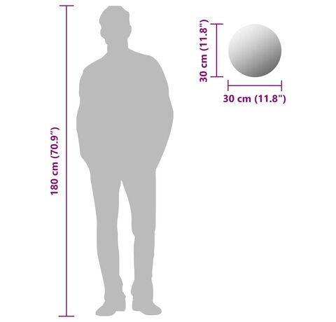 Oglindă fără ramă, 30 cm, sticlă, rotund