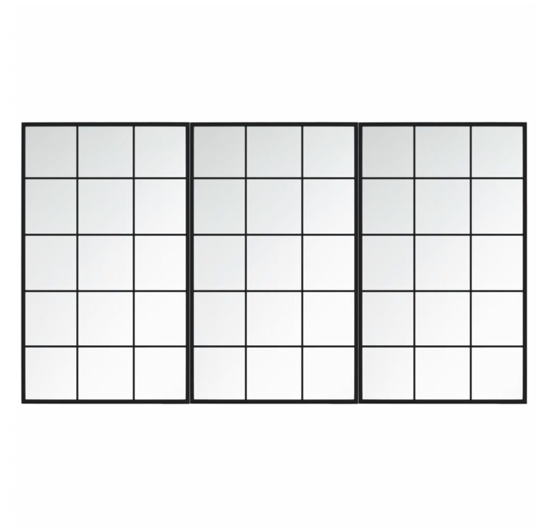 - Acest produs conține 3 oglinzi (100 x 60 cm), care pot fi așezate una lângă alta pentru o dimensiune totală de 180 x 100 cm.