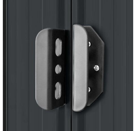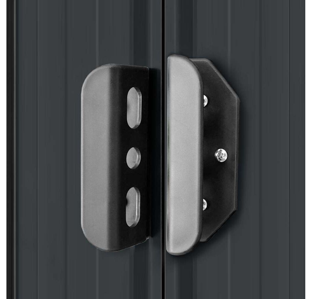 Această magazie de depozitare are guri de aerisire atât în față, cât și în spate, asigurând o ventilație excelentă. Ușile duble glisante din față permit accesul ușor la intrare sau ieșire. Datorită construcției din oțel galvanizat, împreună cu finisajul vopsit electrostatic, magazia de depozitare pentru scule este durabilă și puternică.