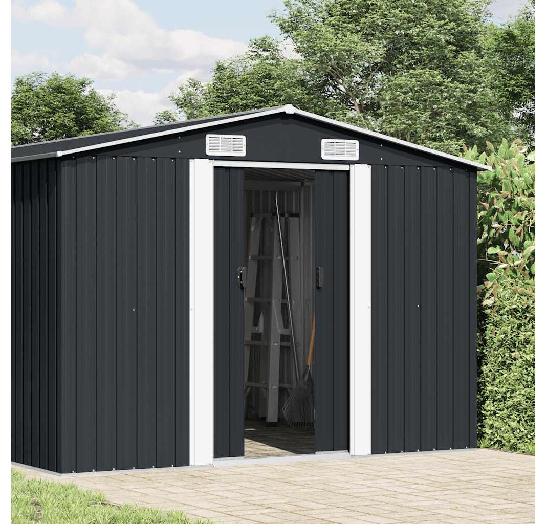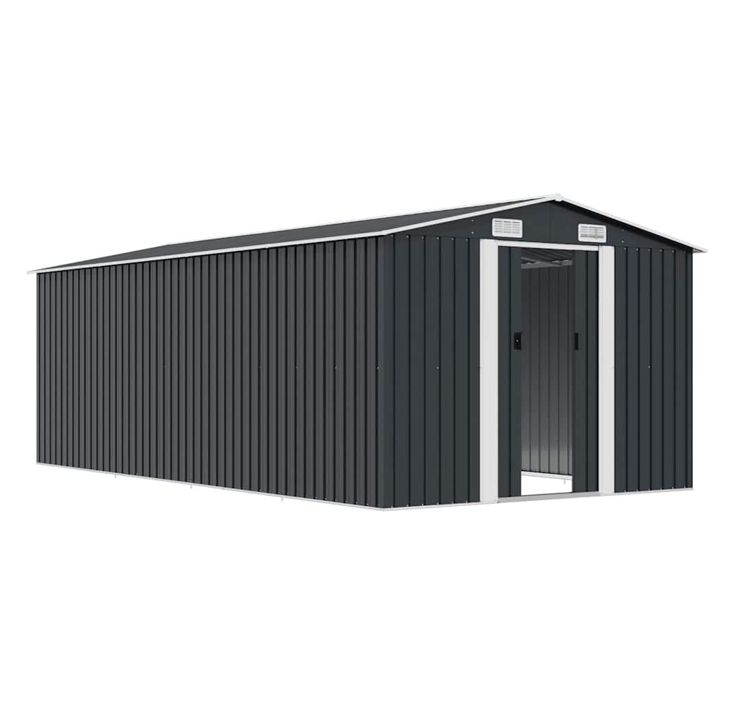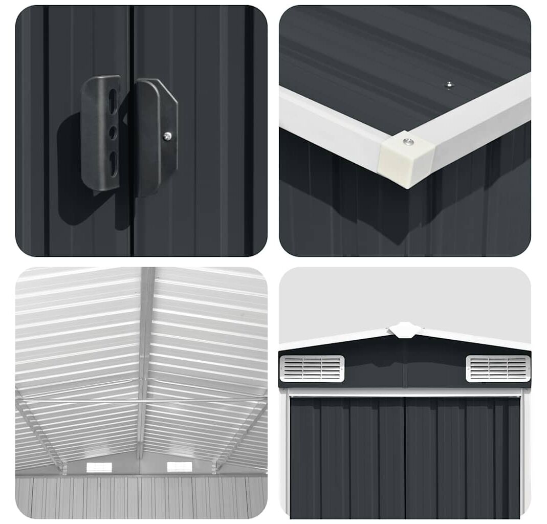 Această magazie metalică va fi perfectă pentru depozitarea unei mari varietăți de unelte, mobilier de grădină și echipamente de grădină. Șopronul de grădină nu oferă doar protecție împotriva murdăriei și prafului, ci și împotriva intemperiilor.