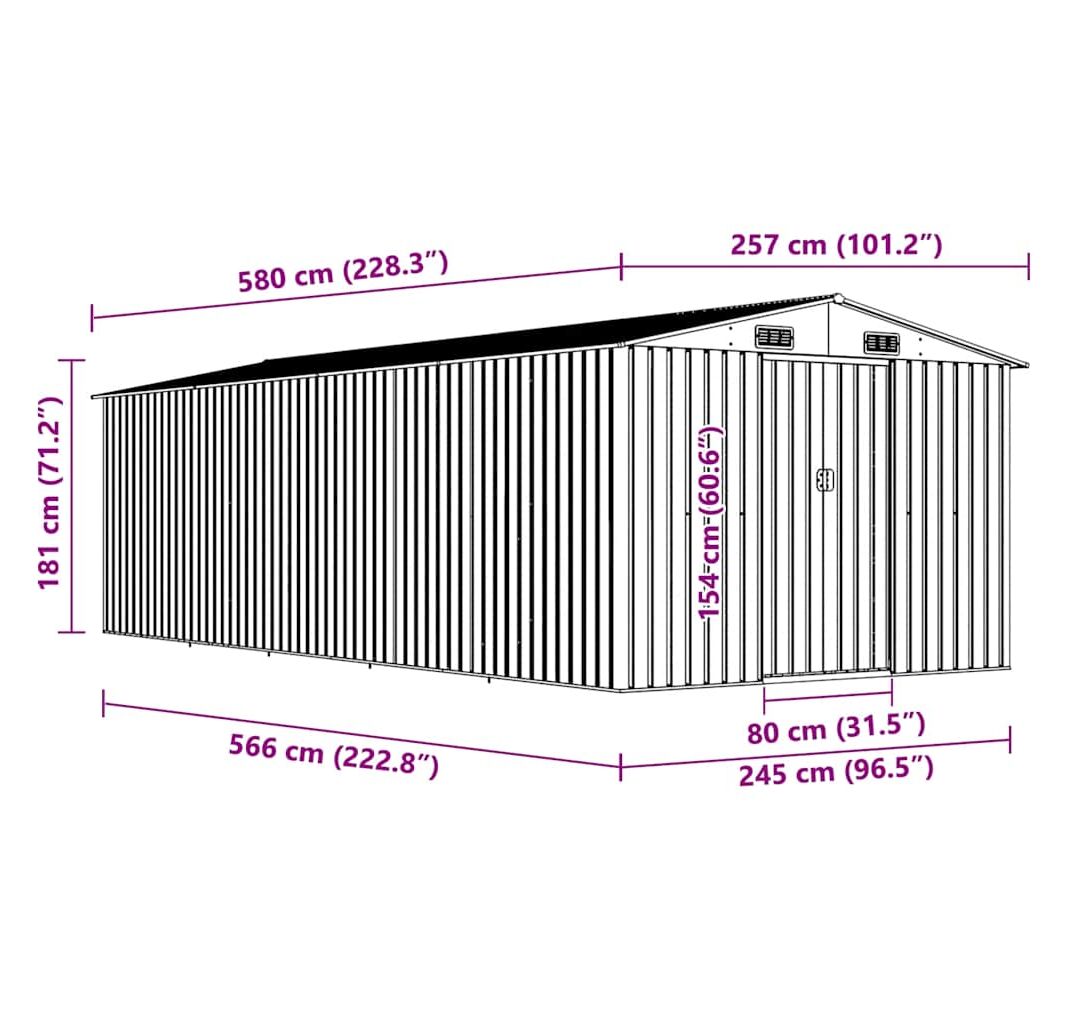 Șopron de grădină, 257x580x181 cm, gri, metal