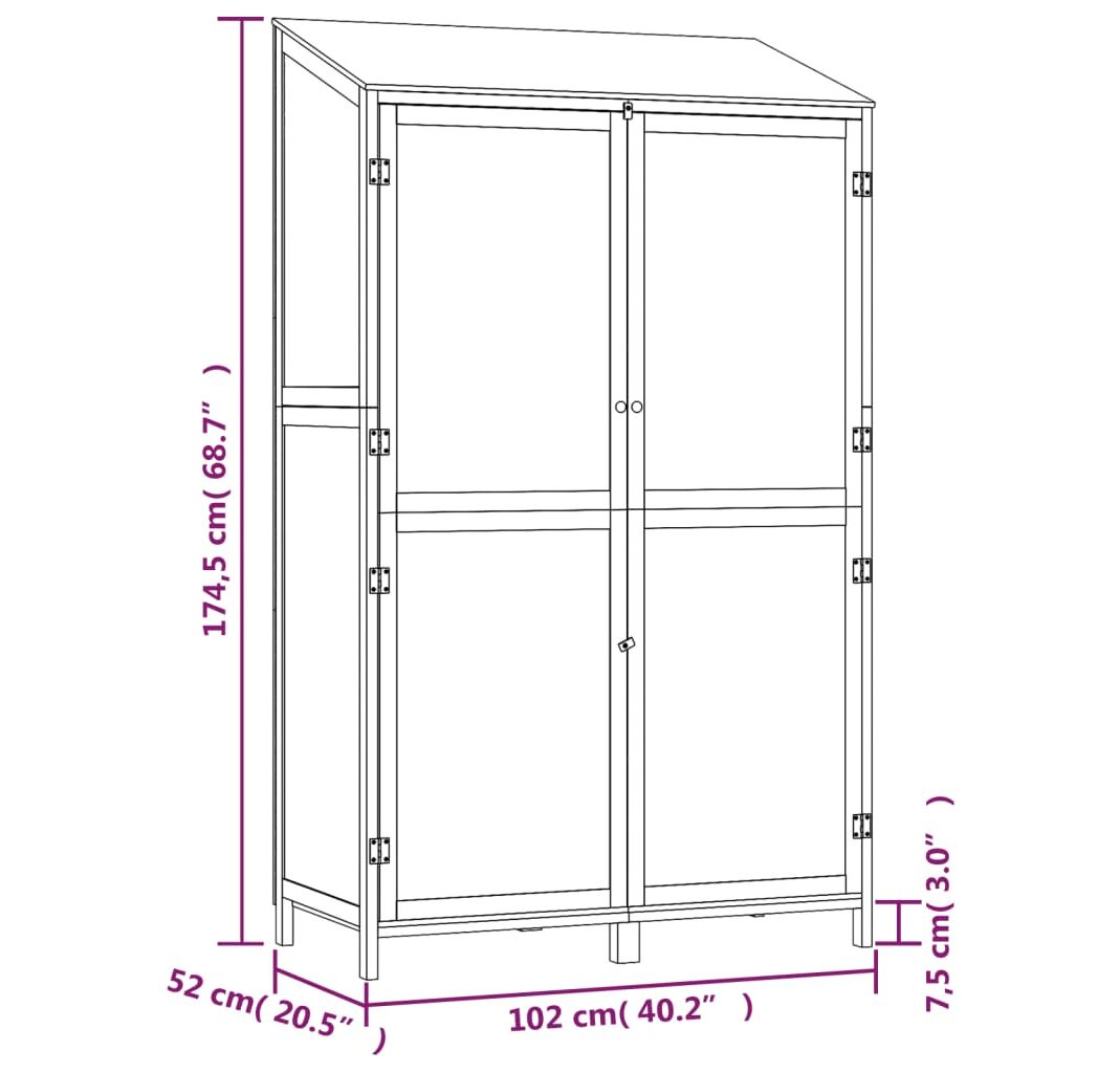 - Cadru robust: Cadrul din lemn asigură robustețe și stabilitate. Magazia de grădină oferă protecție împotriva murdăriei, prafului, vântului puternic și a intemperiilor.