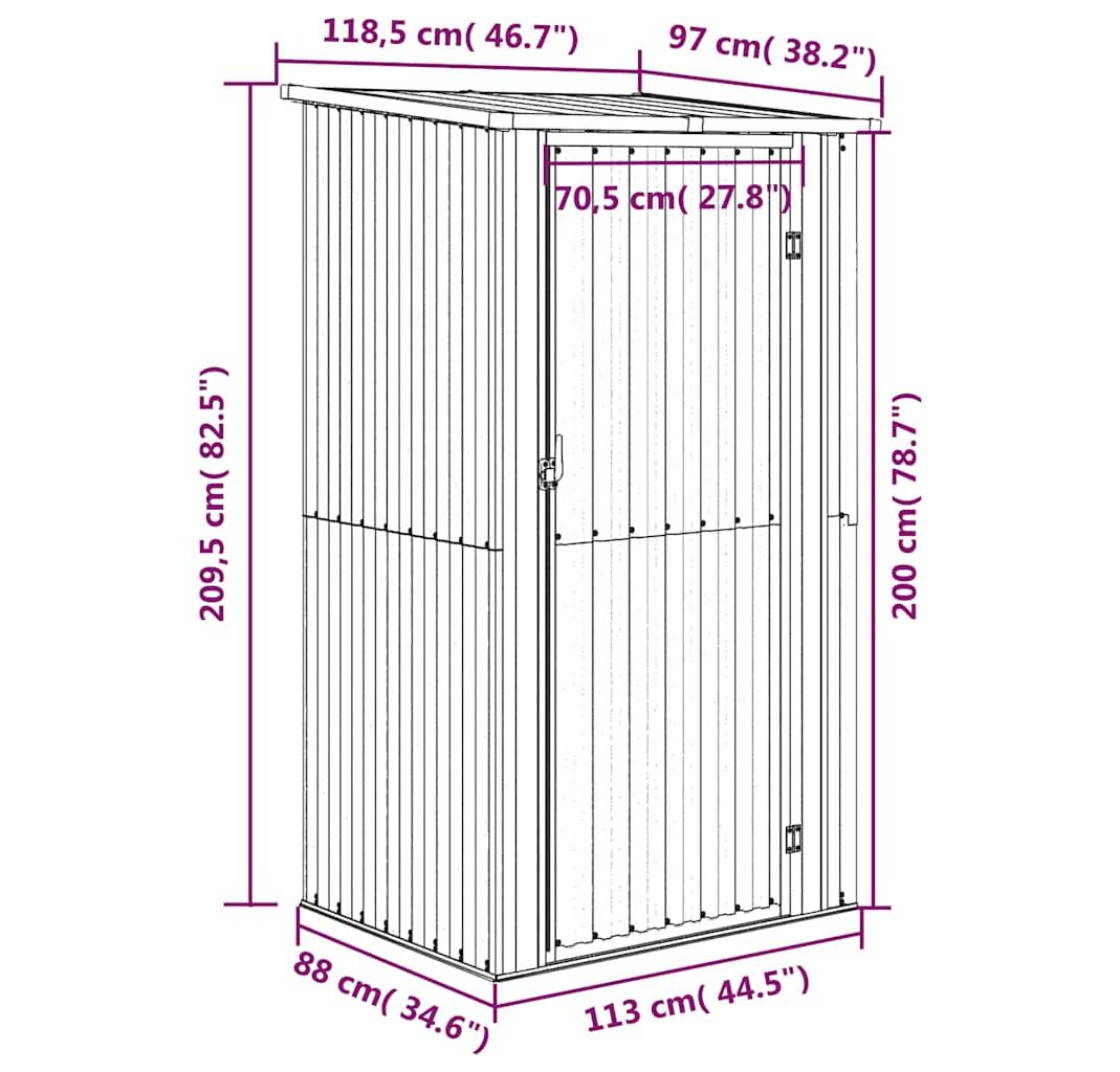 Șopron de grădină, antracit, 118,5x97x209,5 cm, oțel zincat