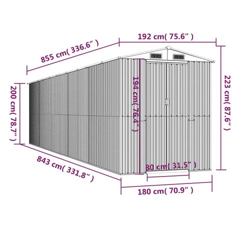 - Dimensiuni totale: 192 x 855 x 223 cm (L x l x î)