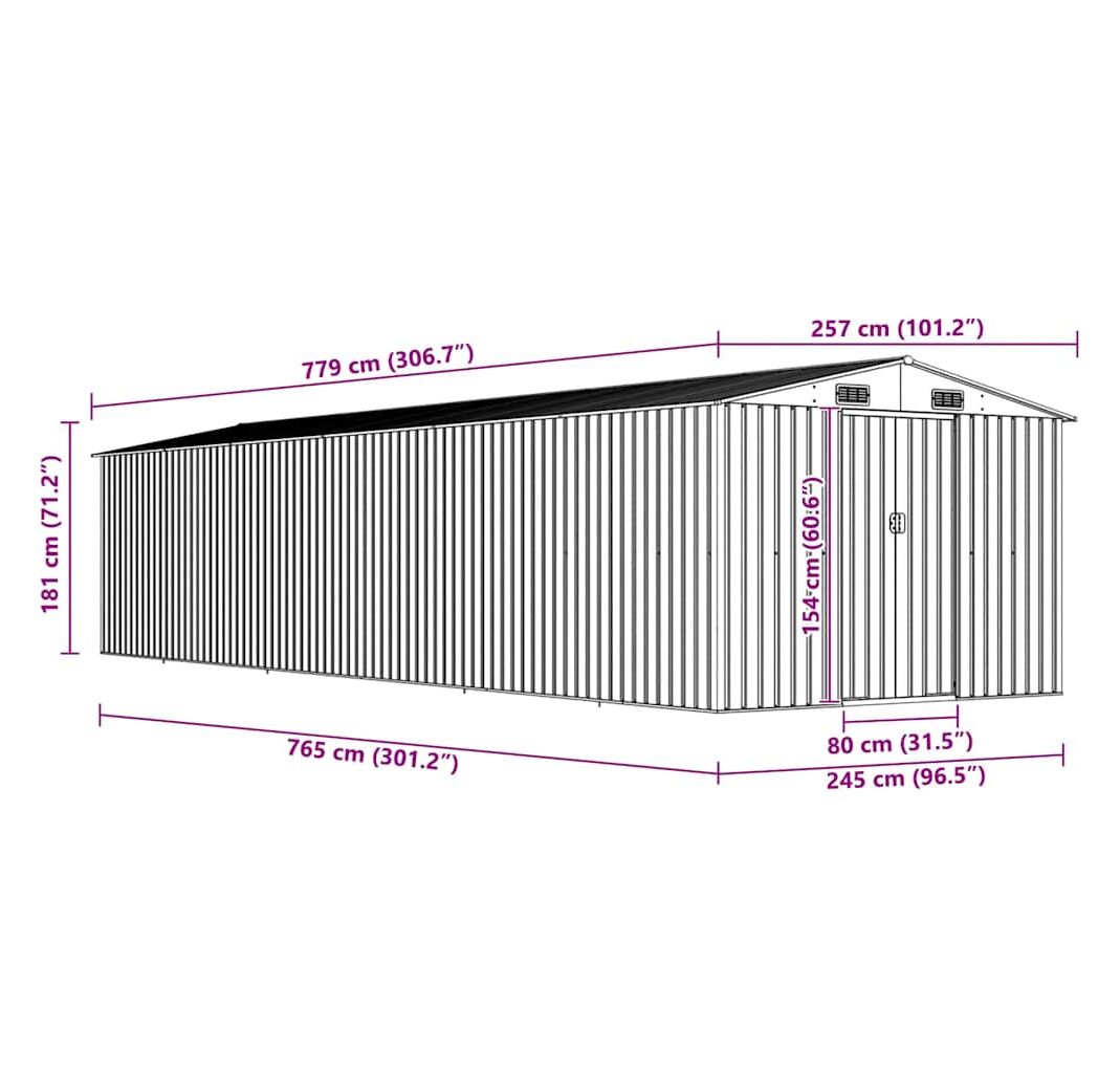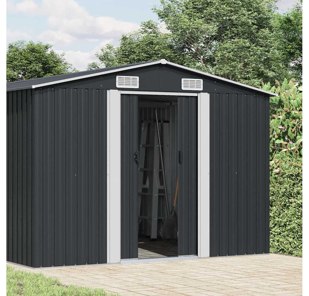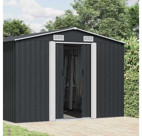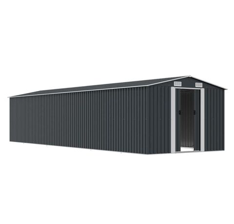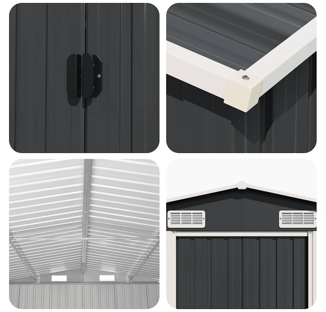 Această magazie de grădină din oțel galvanizat va fi perfectă pentru depozitarea unei game largi de unelte, mobilier de grădină și echipamente de grădină. Magazia de grădină nu oferă doar protecție împotriva murdăriei și prafului, ci și împotriva vântului și a intemperiilor.