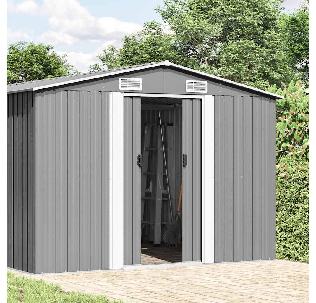 Această magazie de grădină din oțel galvanizat va fi perfectă pentru depozitarea unei mari varietăți de unelte, mobilier de grădină și echipamente de grădină. Șopronul de grădină nu oferă doar protecție împotriva murdăriei și prafului, ci și împotriva vântului și intemperiilor.