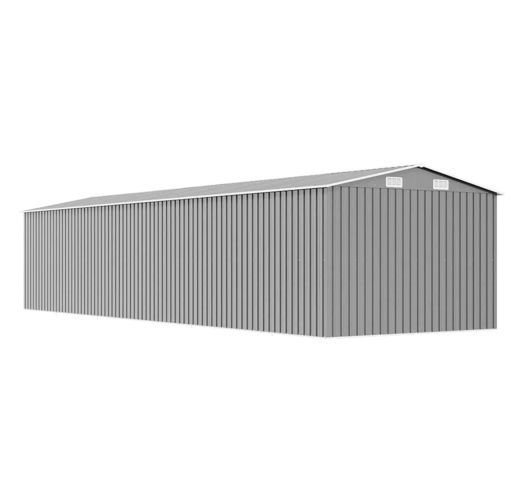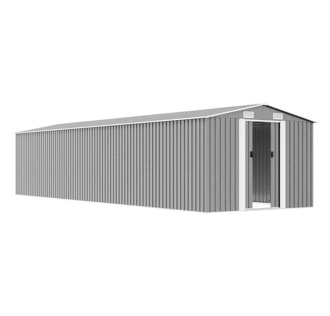 Această magazie de depozitare are guri de aerisire, asigurând o ventilație excelentă. Ușile duble glisante din față permit accesul ușor, la intrare sau ieșire. Construcția din oțel galvanizat asigură durabilitate și rezistență, astfel încât aceasta nu va coroda și nu va fi afectată de condițiile meteorologice extreme.