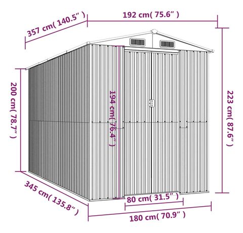 Cantitatea minima pentru "Șopron de grădină, gri deschis, 192x357x223 cm, oțel galvanizat" este 1.