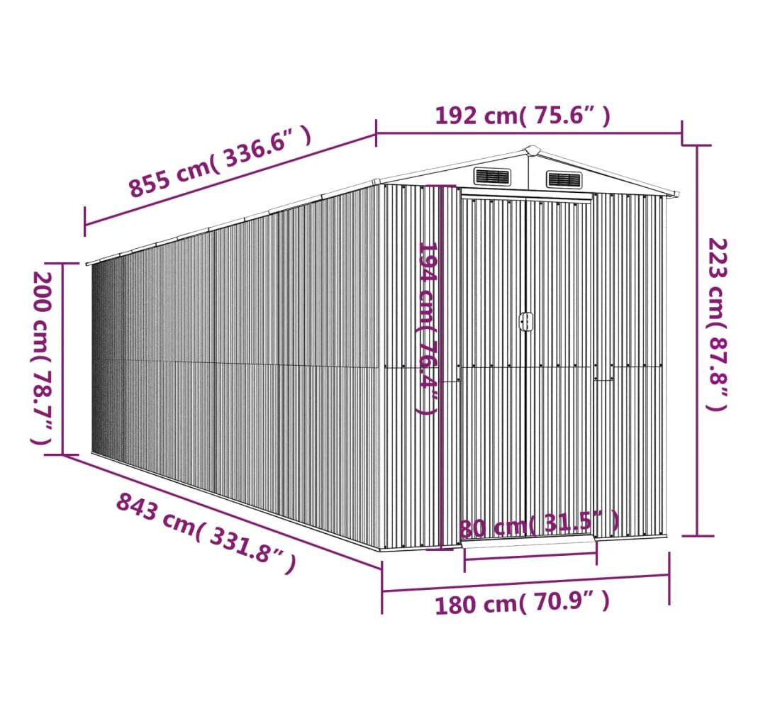 Cantitatea minima pentru "Șopron de grădină, gri deschis, 192x855x223 cm, oțel galvanizat" este 1.