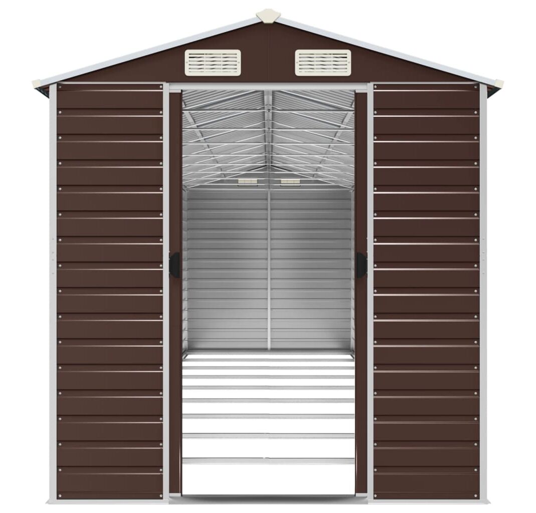 Cantitatea minima pentru "Șopron de grădină, maro, 191x810x198 cm, oțel galvanizat" este 1.