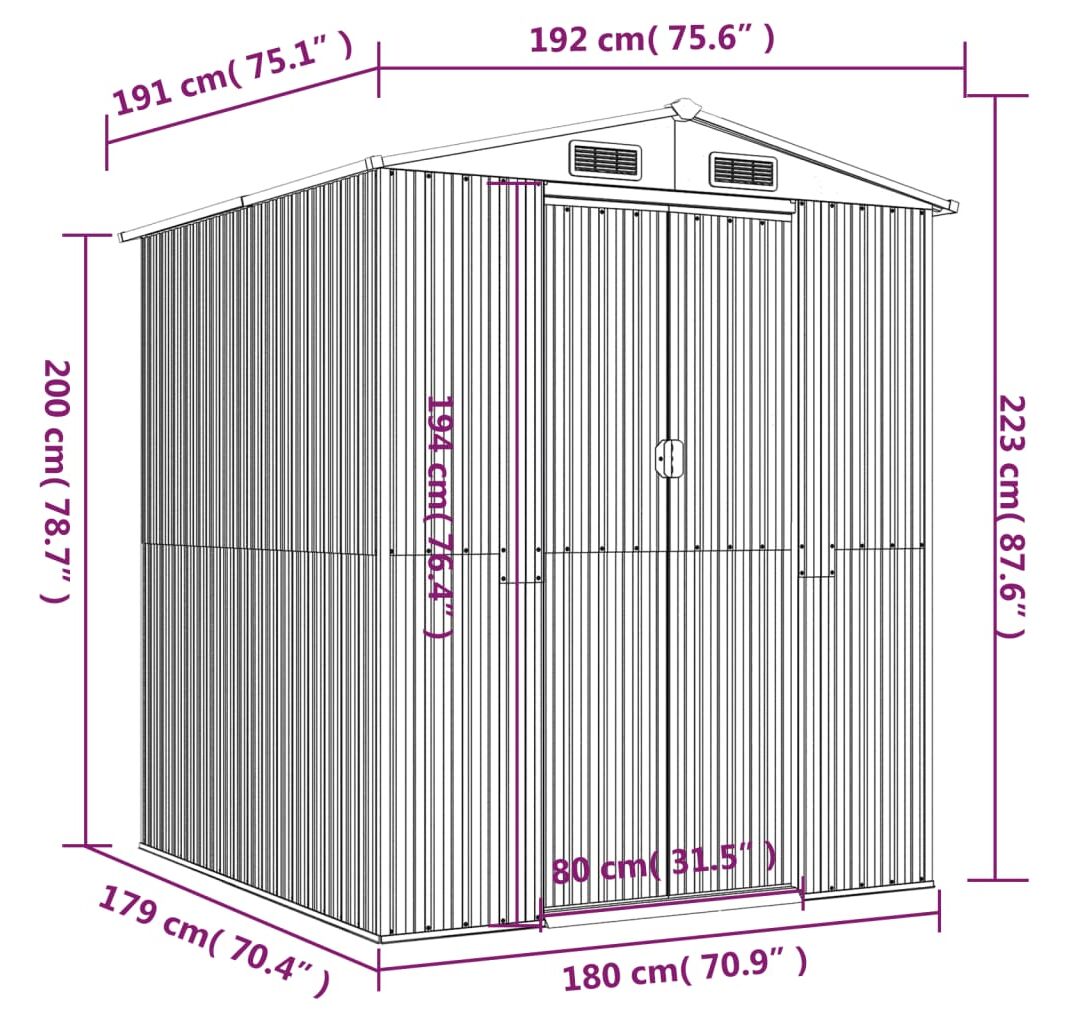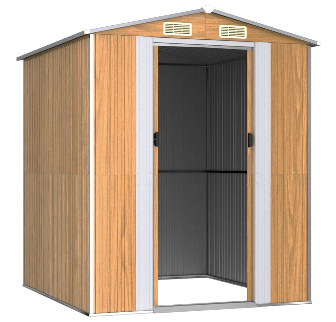 - Design practic: Această magazie de depozitare are guri de aerisire atât în față, cât și în spate, asigurând o ventilație excelentă. Ușile duble glisante permit accesul ușor la intrare sau la ieșire.