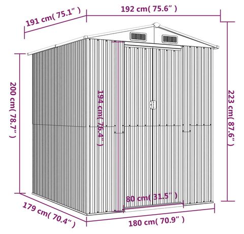 Cantitatea minima pentru "Șopron de grădină, verde, 192x191x223 cm, oțel zincat" este 1.