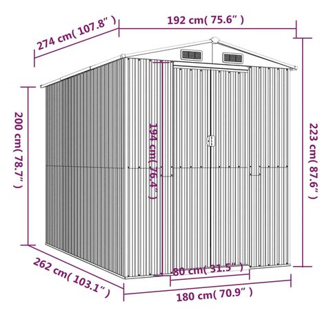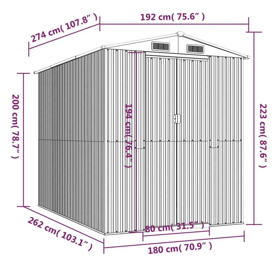 • Material durabil: Magazia pentru scule de grădină este fabricată din oțel galvanizat, care este durabil, nu va coroda și nu va fi afectat de condițiile meteorologice nefavorabile.