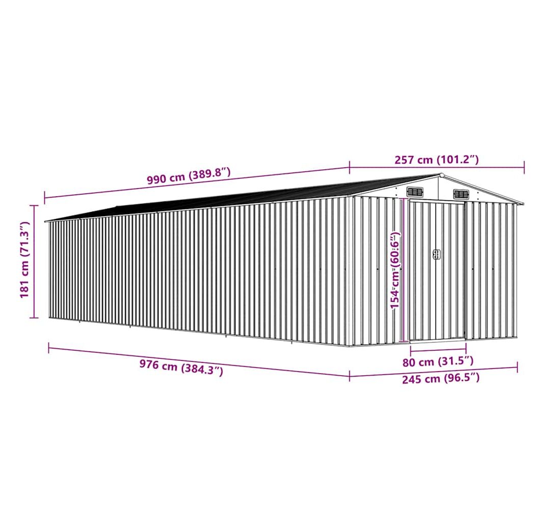 Cantitatea minima pentru "Șopron de grădină, verde, 257x990x181 cm, oțel galvanizat" este 1.