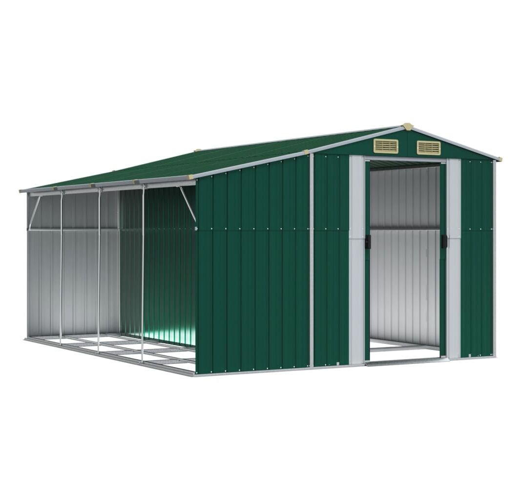 - Spațiu amplu de depozitare: Acest șopron metalic cu suport pentru lemne de foc oferă spațiu amplu pentru a depozita lemne de foc, unelte de grădină, mobilier, echipamente și multe altele.
