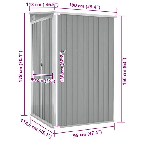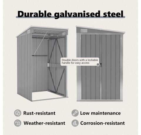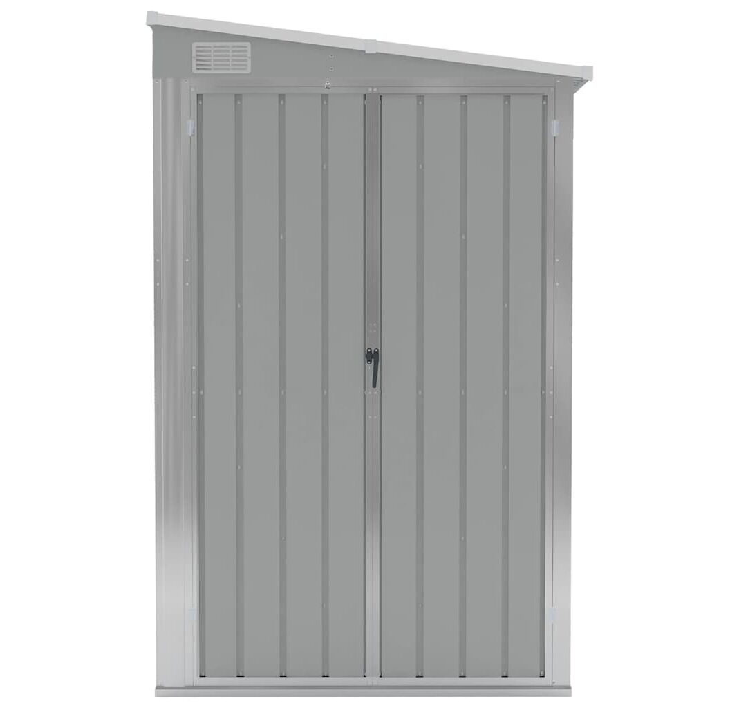 Deoarece este construită din oțel galvanizat și metal, magazia necesită o întreținere minimă și este foarte durabilă. Ușile cu deschidere dublă din față permit intrarea și ieșirea ușoară. Mânerul din plastic cu funcție de blocare asigură siguranța obiectelor dumneavoastră. În plus, apa de ploaie se scurge automat de pe acoperiș datorită designului înclinat.