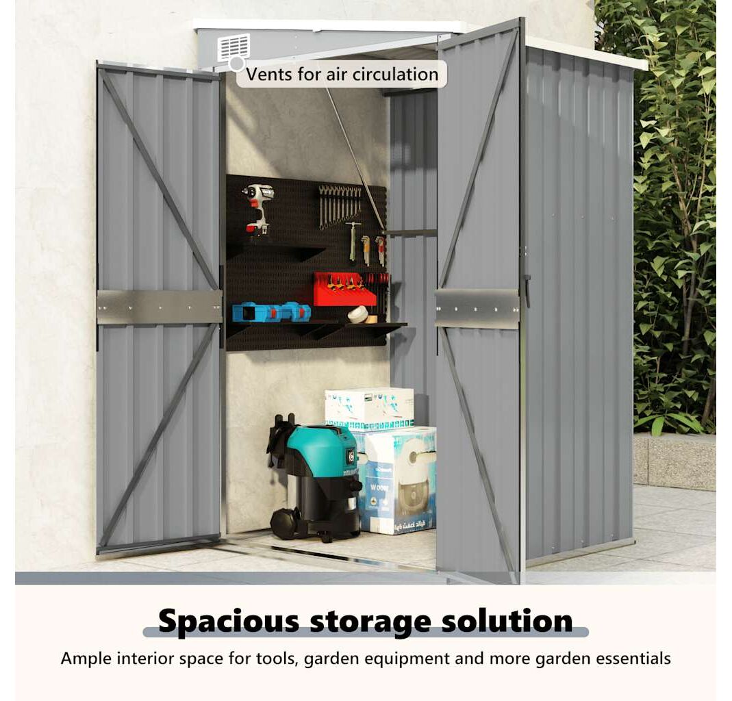 Această magazie de grădină montată pe perete este perfectă pentru depozitarea diverselor obiecte, cum ar fi unelte, mobilier de grădină, echipamente de grădină etc. Magazinul oferă protecție împotriva murdăriei, prafului, dar și împotriva vântului și intemperiilor.
