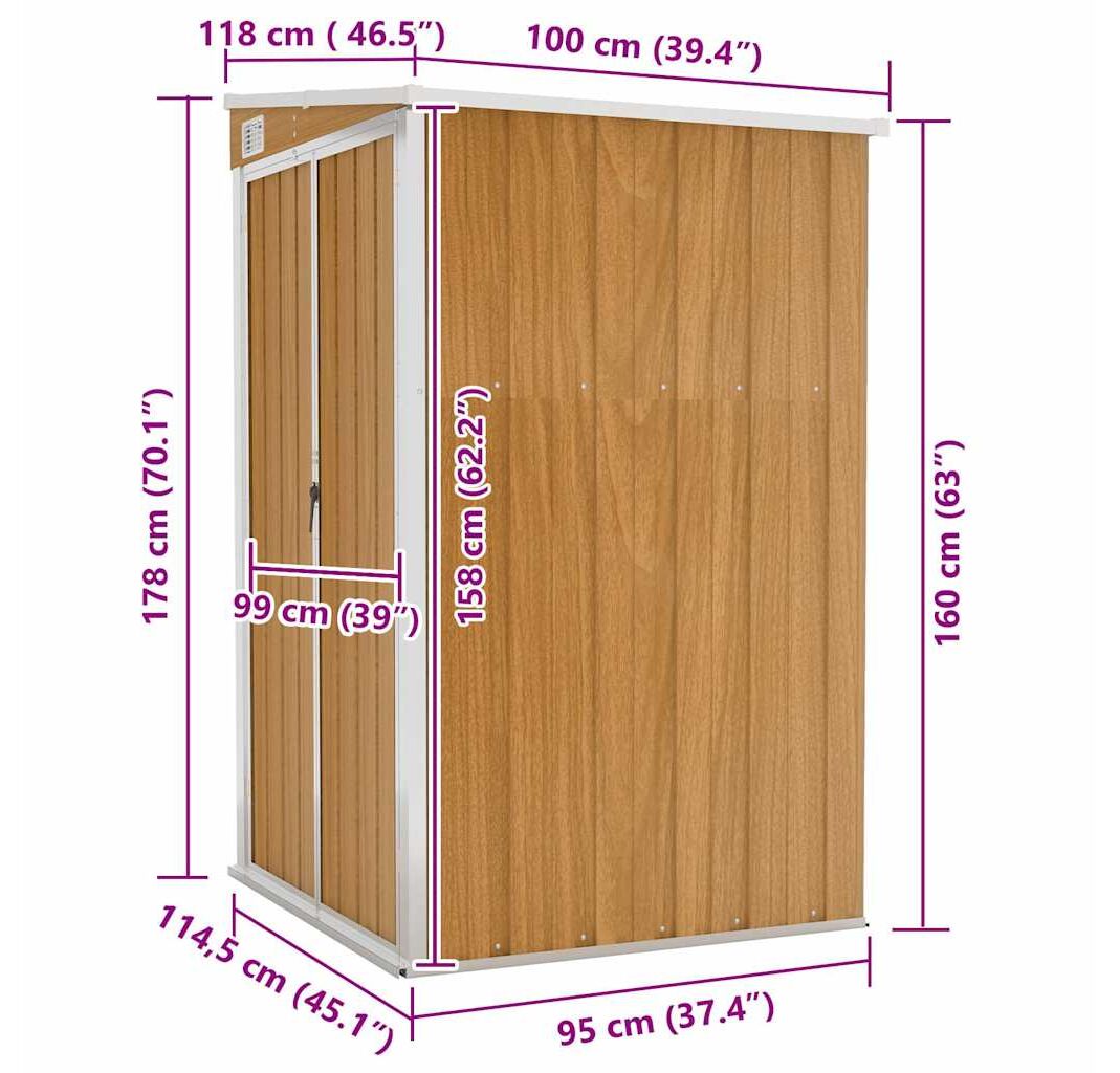 Cantitatea minima pentru "Șopron grădină/montaj perete maro 118x100x178cm oțel galvanizat" este 1.