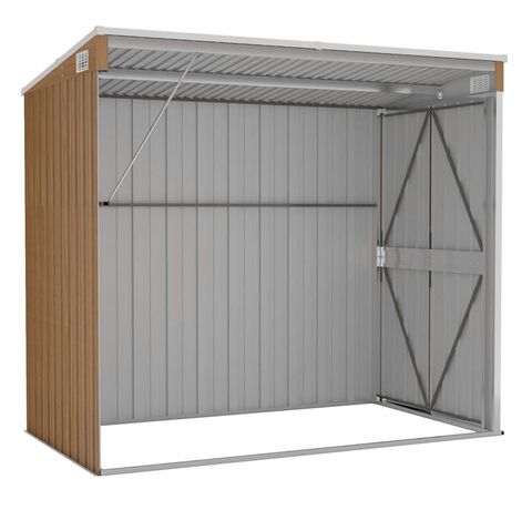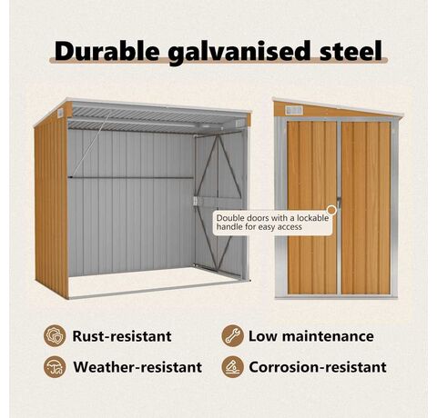 - Spațiu amplu de depozitare: Această magazie metalică oferă mult spațiu pentru a depozita lemne de foc, unelte de grădină, mobilier, echipamente și multe altele. De asemenea, are un acoperiș extins pentru depozitarea lemnelor de foc. Acoperișul poate fi fixat pe ambele părți ale șopronului.