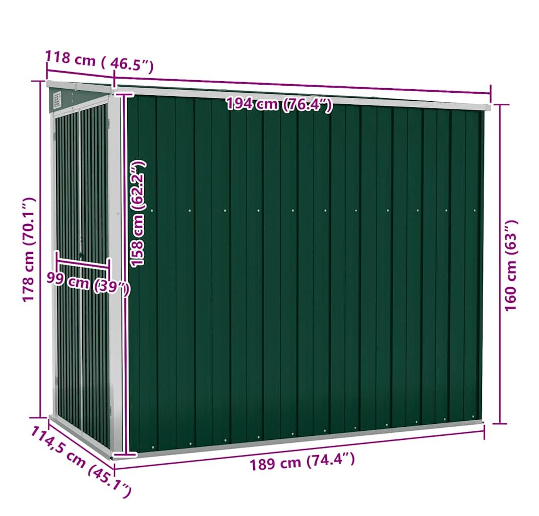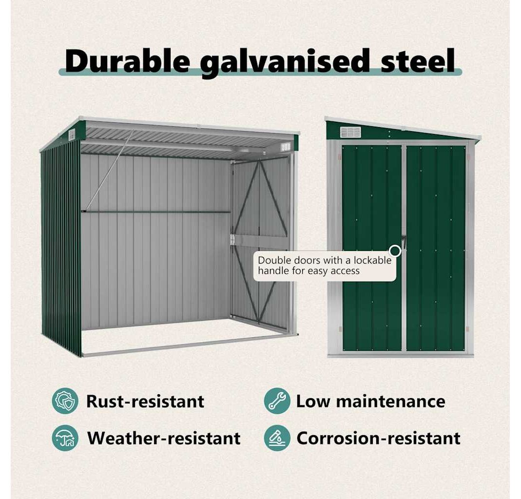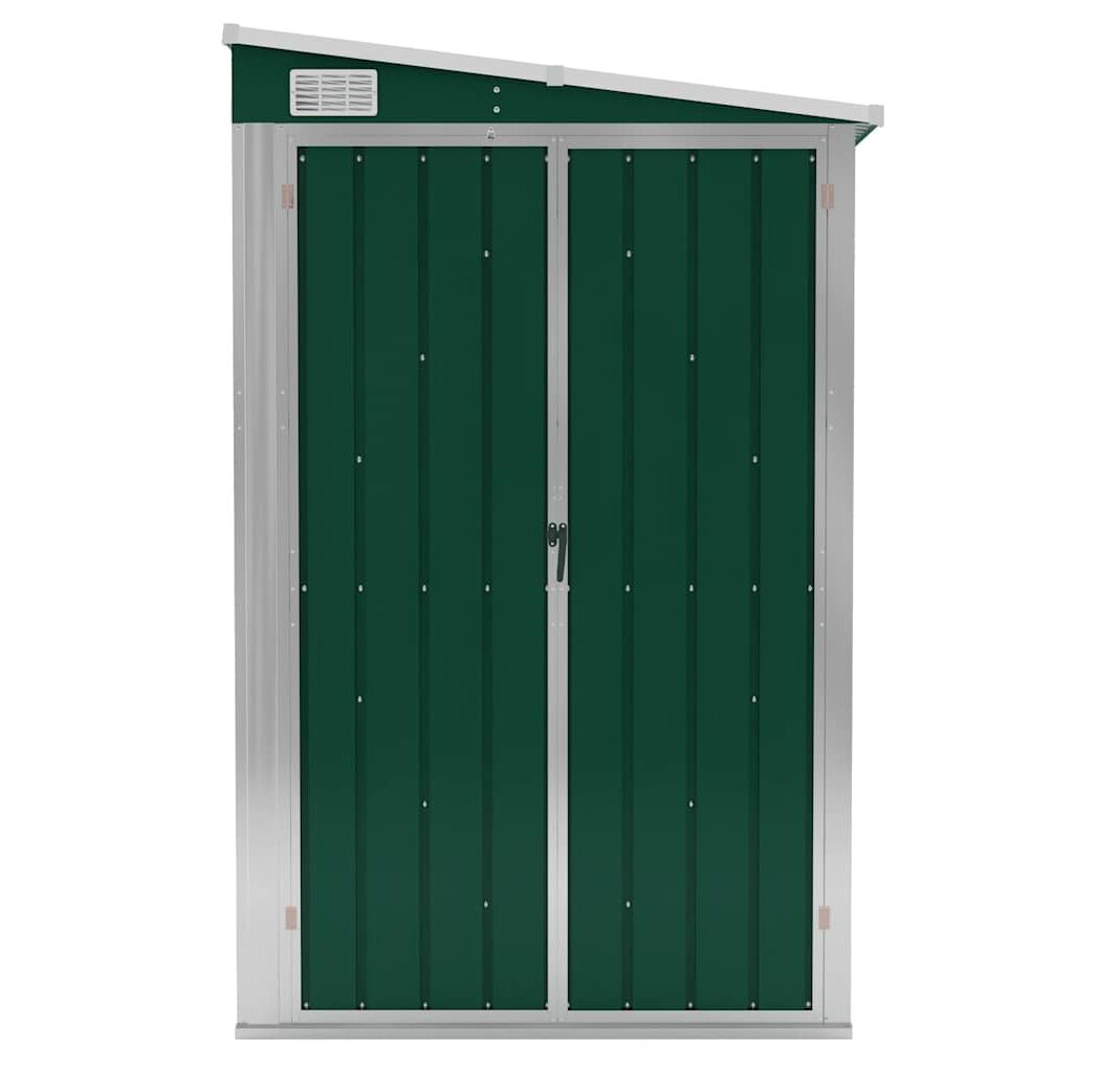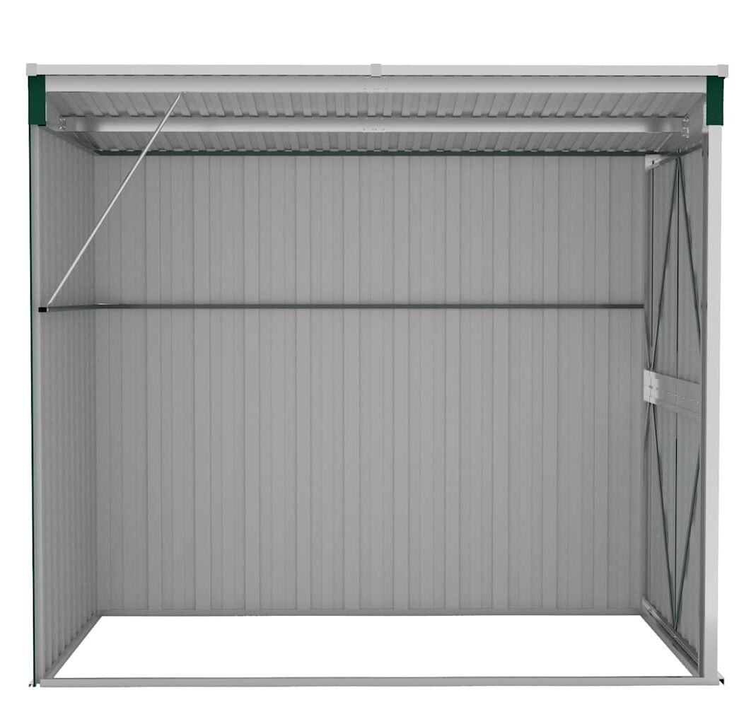 Deoarece este construită din oțel galvanizat și metal, magazia necesită o întreținere minimă și este foarte durabilă. Ușile cu deschidere dublă din față permit intrarea și ieșirea ușoară. Mânerul din plastic cu funcție de blocare asigură siguranța obiectelor dumneavoastră. În plus, apa de ploaie se scurge automat de pe acoperiș datorită designului înclinat.