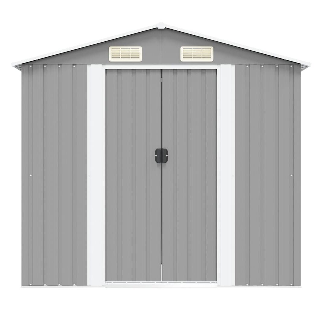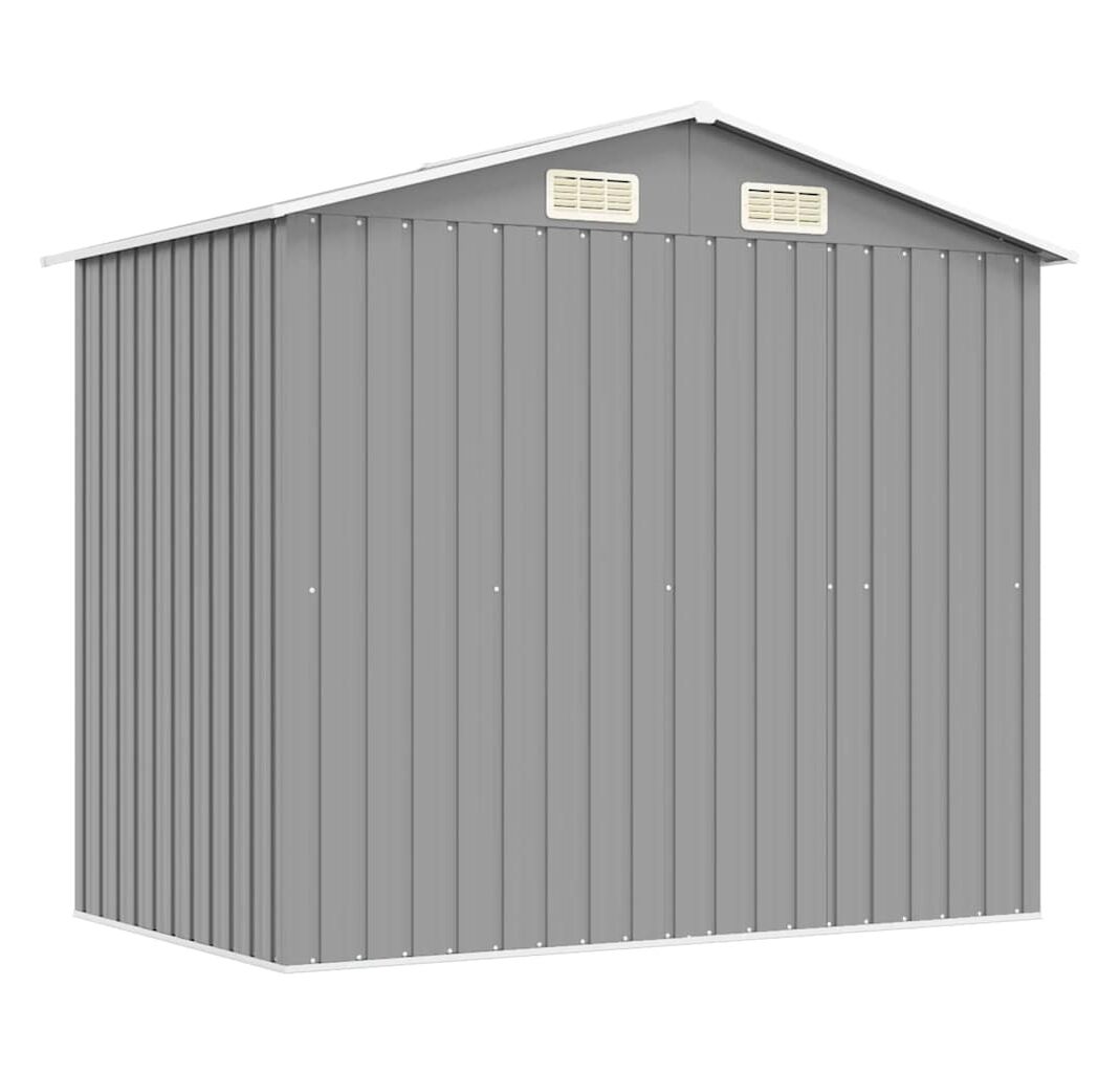 Acest spațiu de depozitare are 4 guri de aerisire, 2 în față și 2 în spate, asigurând o ventilație excelentă. Ușile duble glisante din față permit accesul și ieșirea din magazie cu ușurință.
