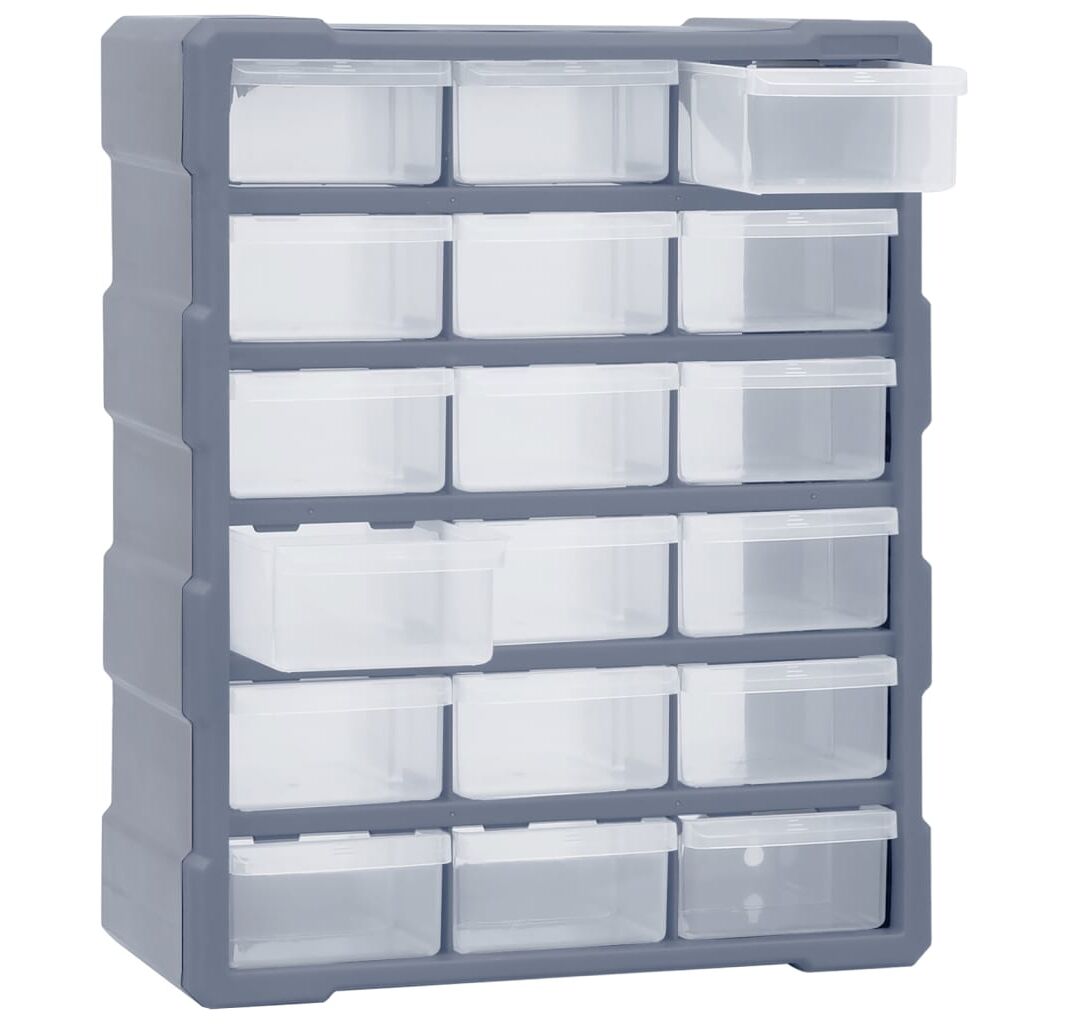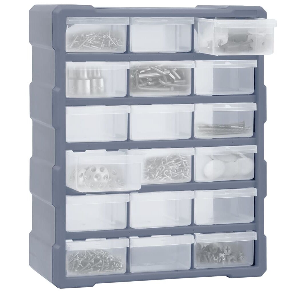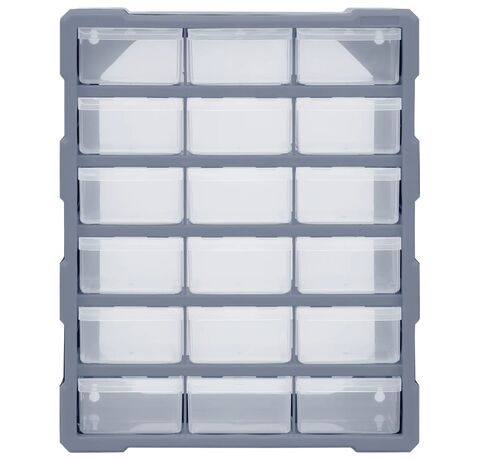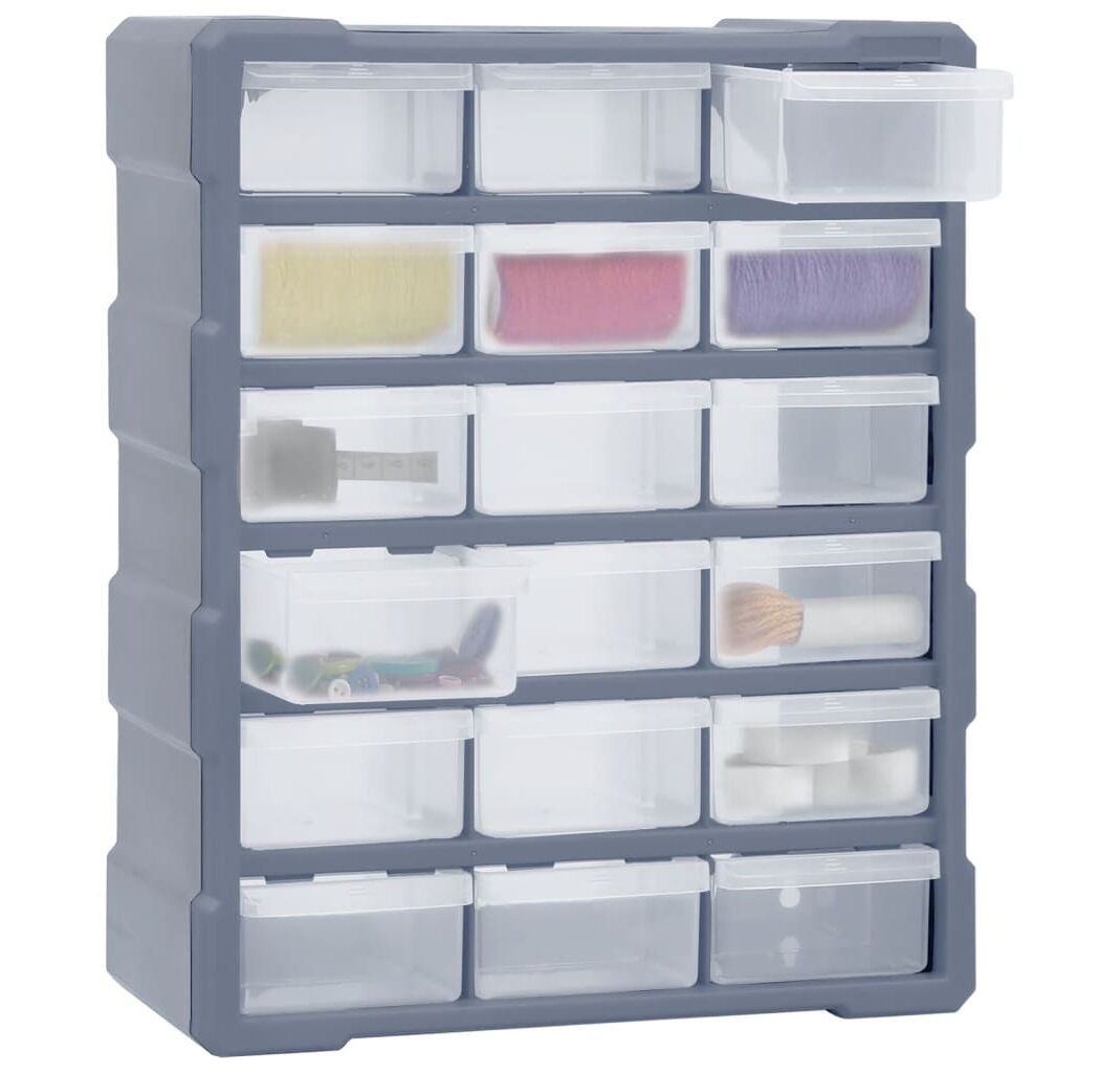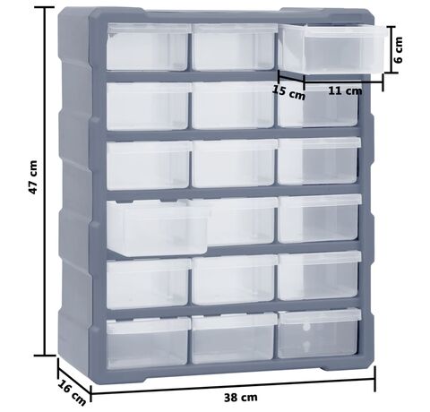 Acest organizator cu 18 sertare medii este un element absolut necesar, fiind conceput pentru a depozita în ordine o mare varietate de articole. Poate fi folosit și ca o cutie pentru articole de cusut sau pentru a păstra cuie.