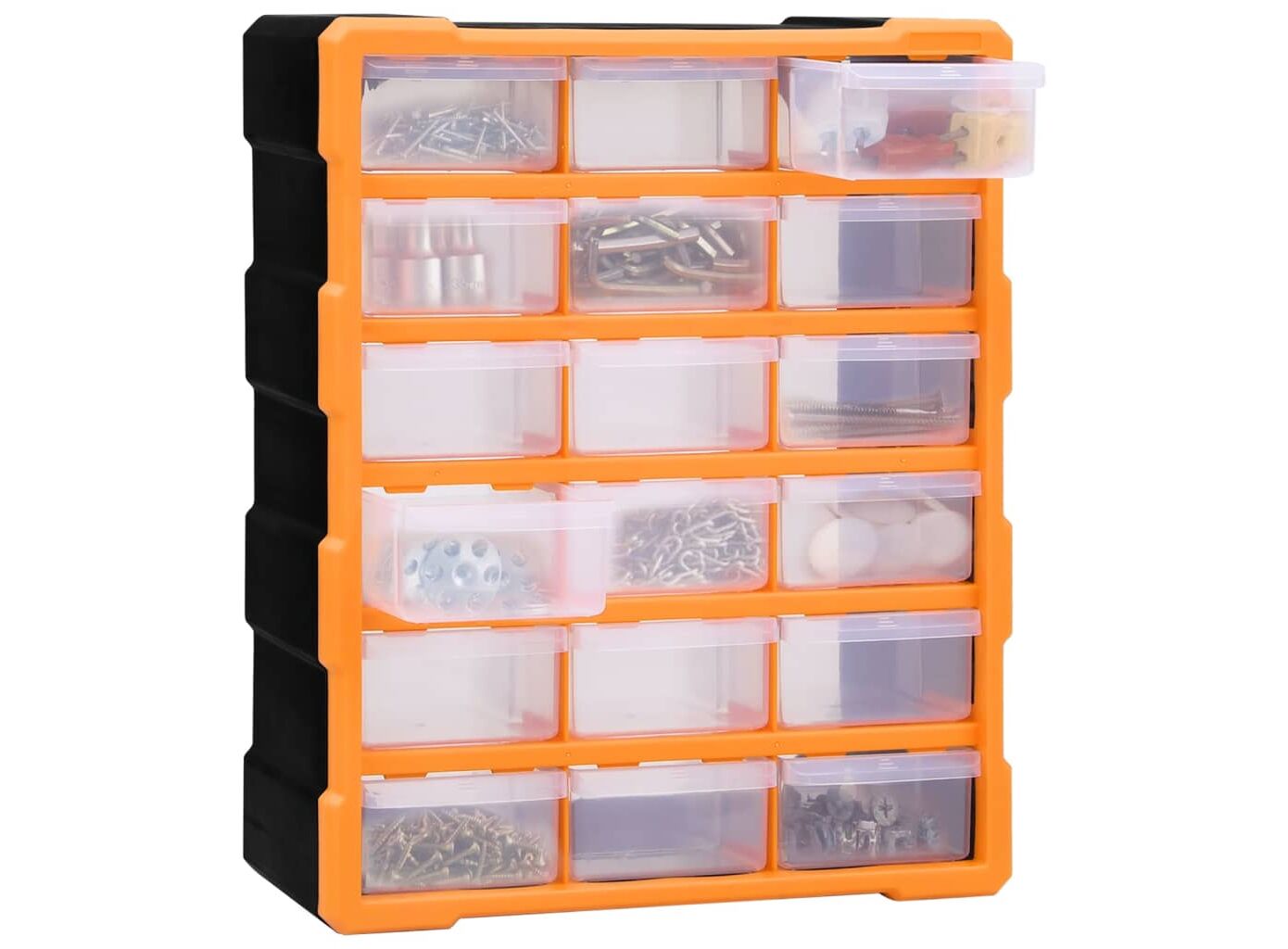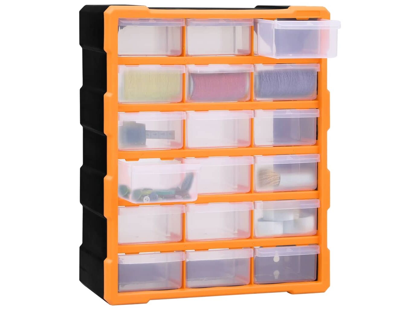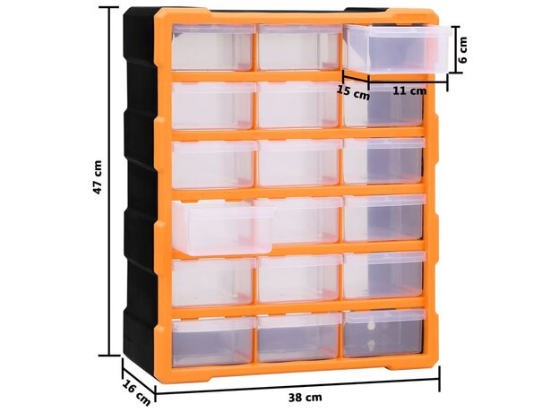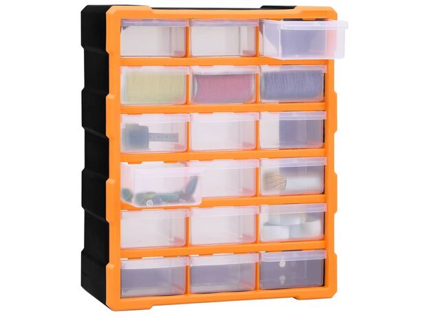 Acest organizator cu 18 sertare medii este un element absolut necesar, fiind conceput pentru a depozita în ordine o mare varietate de articole. Poate fi folosit și ca o cutie pentru articole de cusut sau pentru a păstra cuie.
