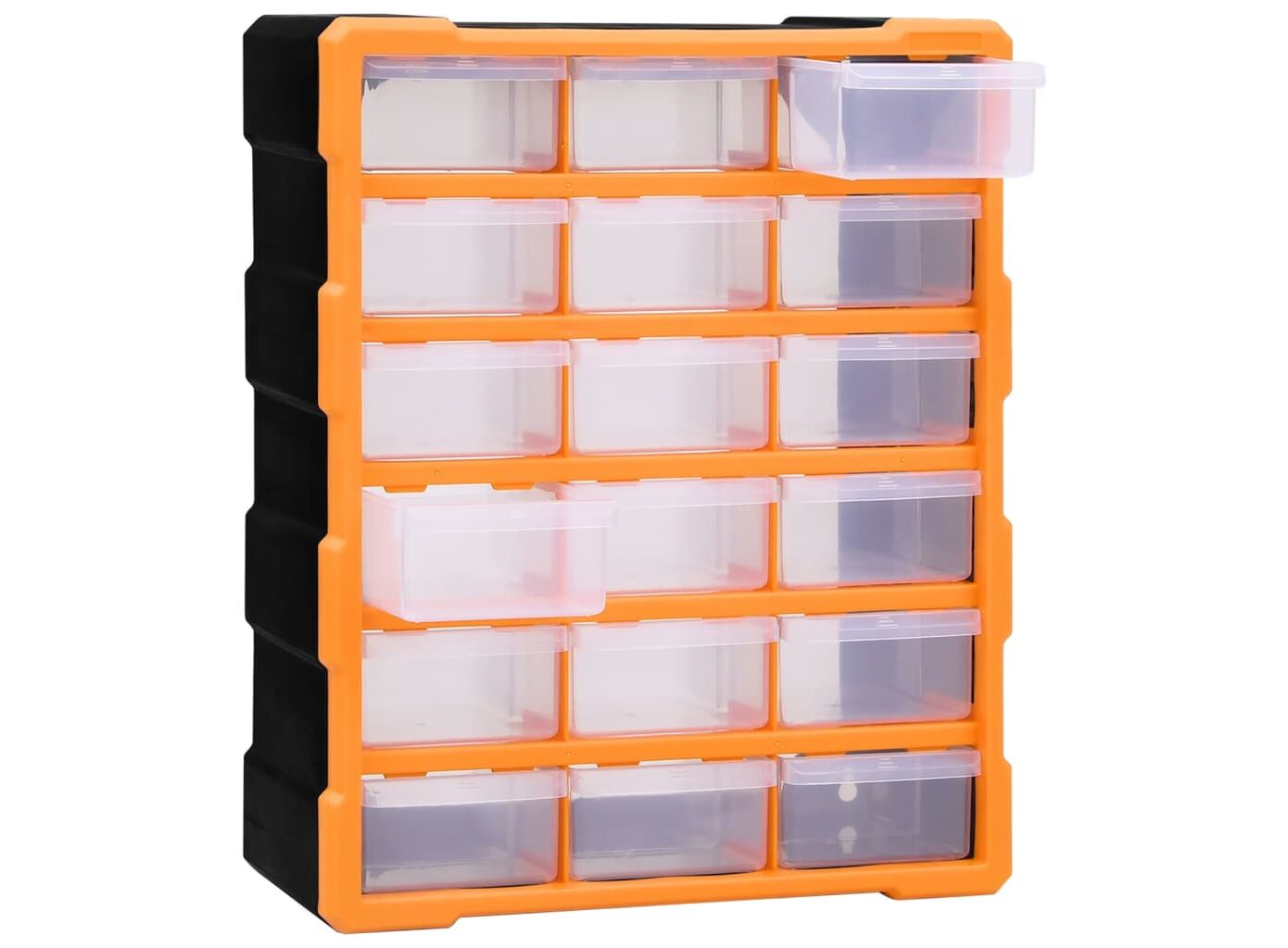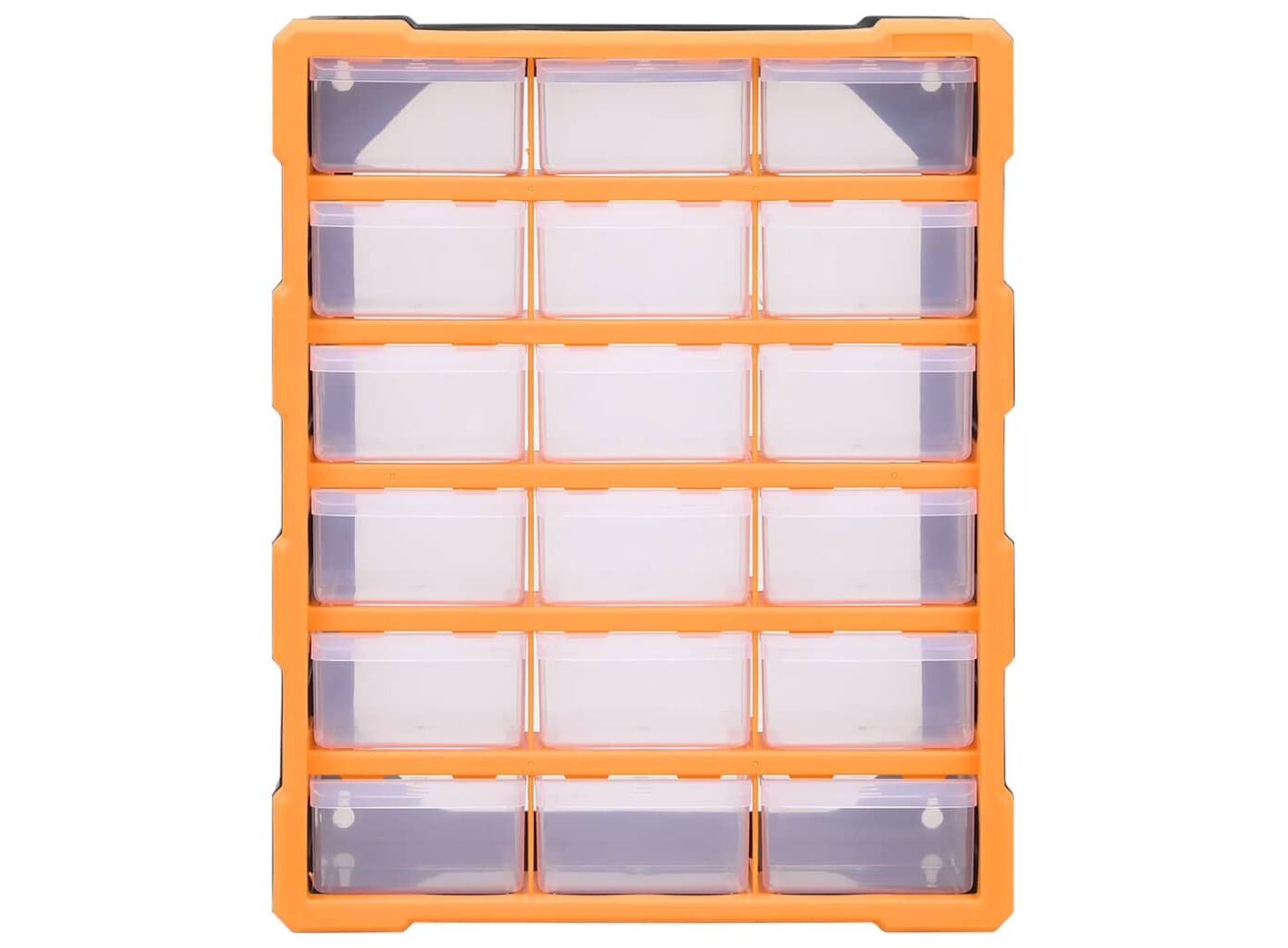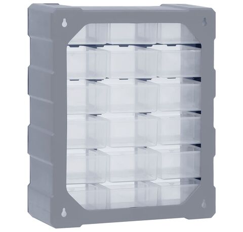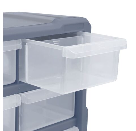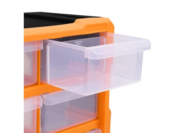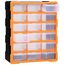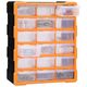 Această unitate de depozitare conține 18 sertare medii, pentru nevoile dvs. zilnice. Ele vă mențin organizate și la îndemână uneltele de mână și accesoriile mai mici, precum elementele de fixare. Dulapul pentru unelte este fabricat din plastic rezistent la impact, care este deopotrivă durabil și stabil. Sertarele sunt realizate din plastic transparent, astfel încât să puteți identifica rapid conținutul. Această cutie de lucru este ideală pentru depozitarea piulițelor, șuruburilor, bolțurilor, cuielor, elementelor de fixare și a altor componente diverse.