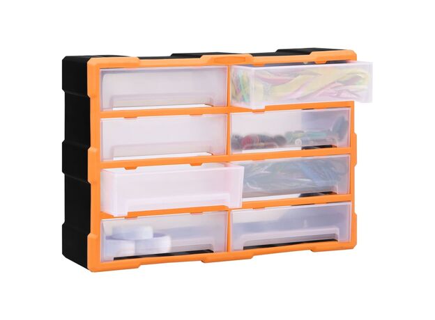Acest organizator cu 18 sertare medii este un element absolut necesar, fiind conceput pentru a depozita în ordine o mare varietate de articole. Poate fi folosit și ca o cutie pentru articole de cusut sau pentru a păstra cuie.